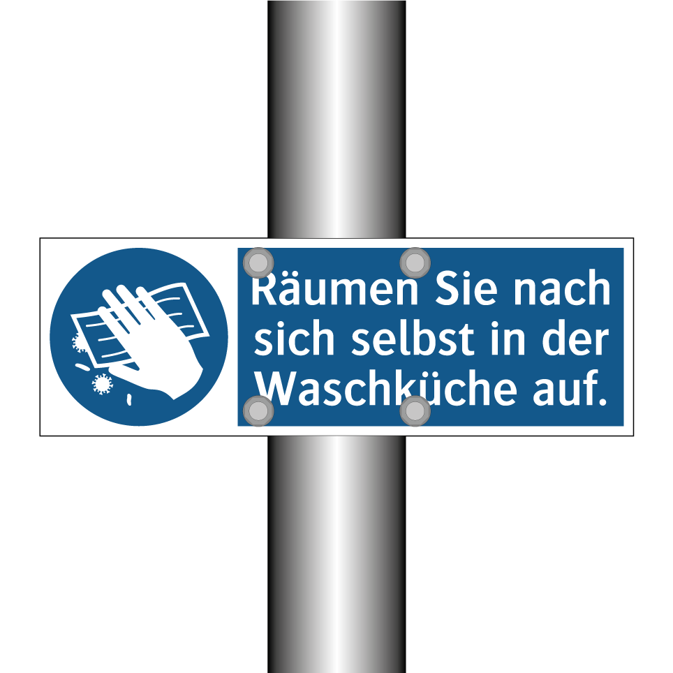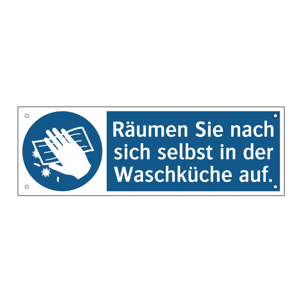 Gebotsschild mit dem Text Räumen Sie nach sich selbst in der Waschküche auf.