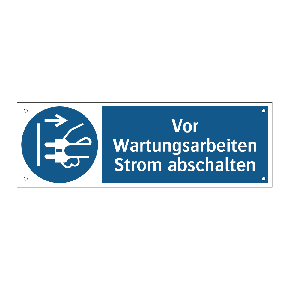 Gebotsschild mit dem Text Vor Wartungsarbeiten Strom abschalten