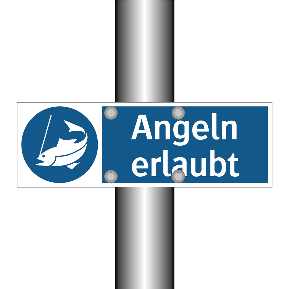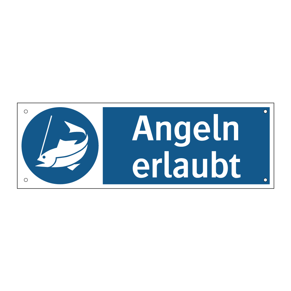 Diese Gebotsschild mit blauem Hintergrund und weißer Schrift ist ideal für Angelplätze, um klarzustellen, dass das Angeln hier gestattet ist. Die deutliche Symbolik sorgt dafür, dass die Botschaft sofort erkennbar ist. Diese Beschilderung eignet sich hervorragend für den Einsatz an Seen, Flüssen oder privaten Angelteichen, wo es wichtig ist, die Erlaubnis zum Angeln zu kommunizieren. Platzieren Sie das Schild an gut sichtbaren Stellen, um sicherzustellen, dass alle Besucher die Regelung verstehen. Diese Art von Gebotsschildern trägt dazu bei, Missverständnisse zu vermeiden und die Nutzung von Angelbereichen zu regulieren.