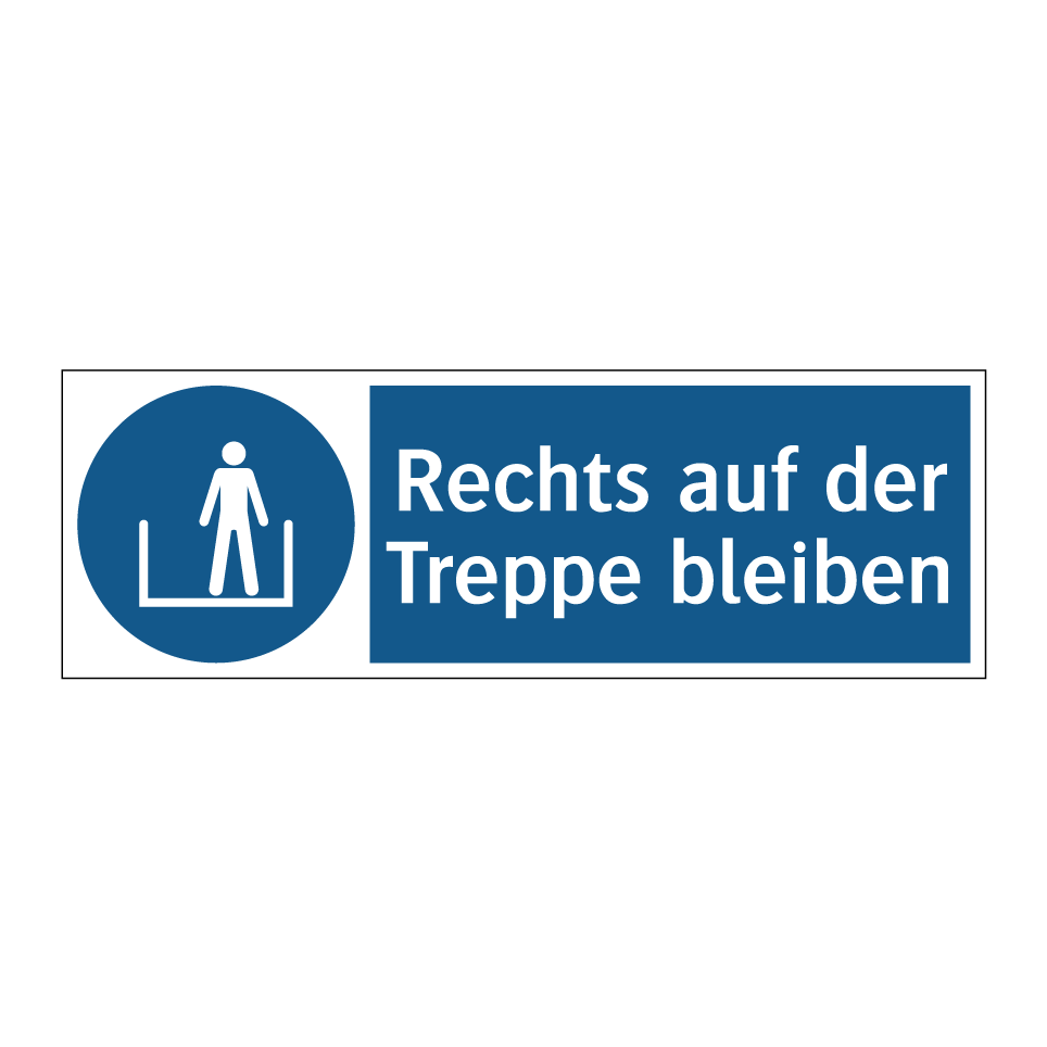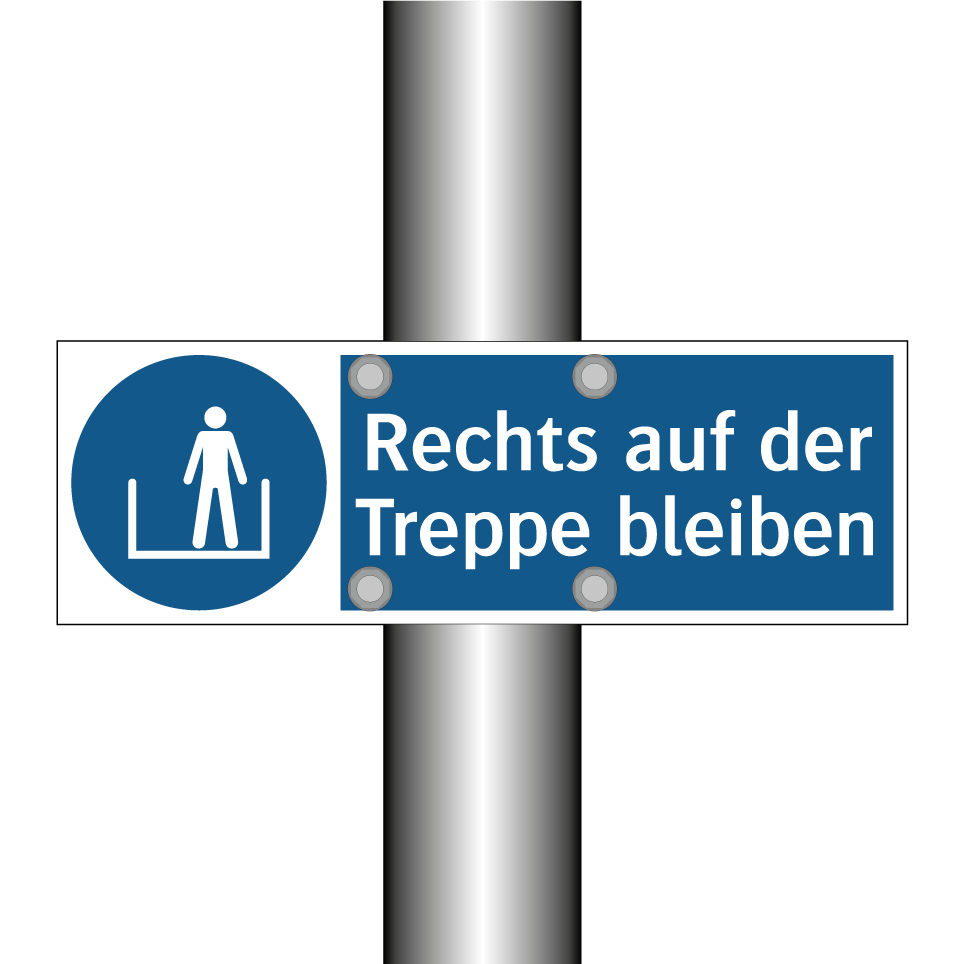 Gebotsschild mit dem Text Rechts auf der Treppe bleiben