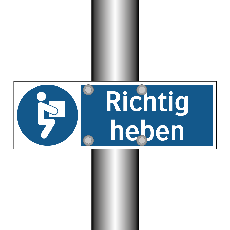 Diese Gebotsschild mit blauem Hintergrund und weißer Schrift ist ideal für Arbeitsumgebungen, in denen das richtige Heben von Lasten entscheidend ist. Sie dient als visuelle Erinnerung für Mitarbeiter, die korrekte Hebetechnik anzuwenden, um Verletzungen zu vermeiden. Diese Gebotsschilder sind besonders nützlich in Lagerhäusern, Fabriken und Baustellen, wo schwere Gegenstände regelmäßig bewegt werden. Platzieren Sie das Schild an gut sichtbaren Stellen wie Eingängen, in der Nähe von Hebezeugen oder in Schulungsräumen, um die Sicherheit und das Bewusstsein für ergonomische Praktiken zu fördern. Die klare Symbolik und der prägnante Text machen es einfach, die Botschaft schnell zu erfassen.