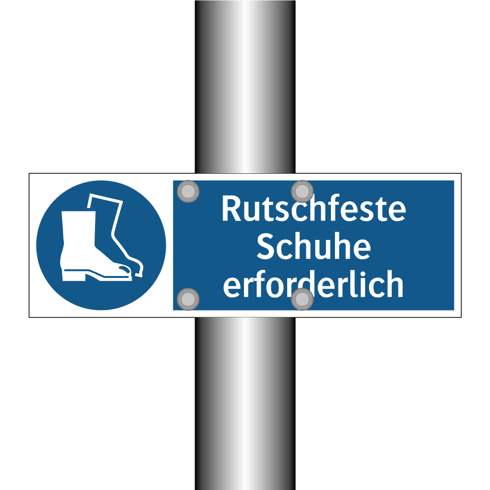 Gebotsschild mit dem Text Rutschfeste Schuhe erforderlich