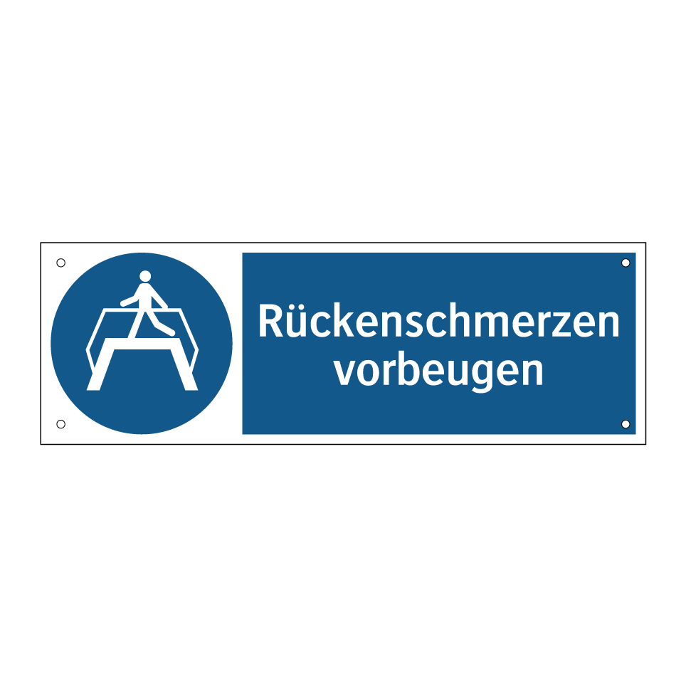 Gebotsschild mit dem Text Rückenschmerzen vorbeugen