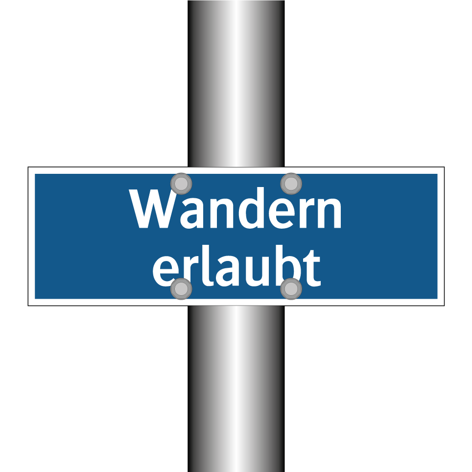 Diese Gebotsschild mit blauem Hintergrund und weißer Schrift ist ideal für die Kennzeichnung von Bereichen, in denen das Wandern gestattet ist. Sie dient dazu, Wanderern klar und deutlich zu signalisieren, dass sie sich in einem Gebiet befinden, in dem das Gehen auf markierten Wegen erlaubt ist. Diese Beschilderung kann an verschiedenen Orten wie Wanderwegen, Naturparks oder Erholungsgebieten angebracht werden, um Besuchern Orientierung und Sicherheit zu bieten. Durch die klare und prägnante Botschaft wird sichergestellt, dass alle Besucher die Regeln des Gebiets verstehen und respektieren. Perfekt für den Einsatz in öffentlichen und privaten Bereichen, um die Zugänglichkeit zu kommunizieren.