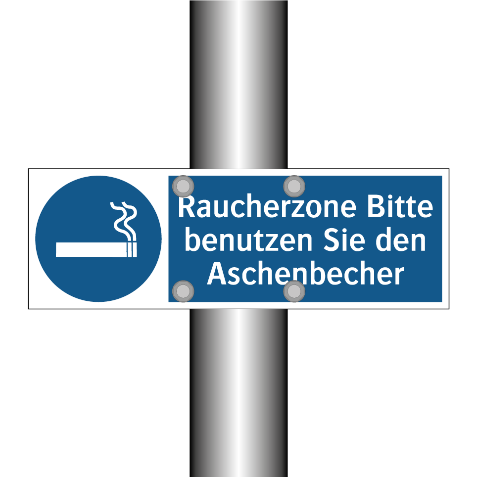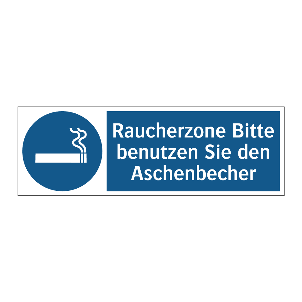 Gebotsschild mit dem Text Raucherzone Bitte benutzen Sie den Aschenbecher