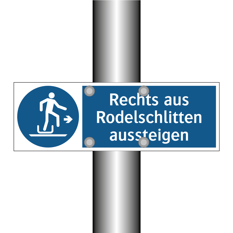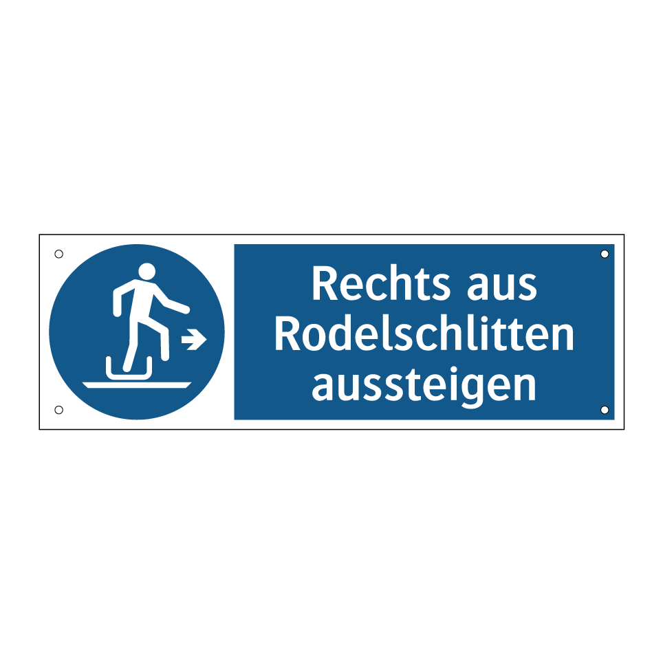 Diese Gebotsschild ist ideal für den Einsatz in Bereichen, in denen klare Anweisungen für das sichere Verlassen von Rodelschlitten erforderlich sind. Perfekt geeignet für Rodelbahnen, Freizeitparks oder Skigebiete, sorgt sie dafür, dass Besucher sicher und geordnet aussteigen. Die auffällige blaue Hintergrundfarbe und das prägnante Symbol ziehen sofort die Aufmerksamkeit auf sich und fördern die Einhaltung der Sicherheitsvorschriften. Diese Beschilderung ist ein unverzichtbares Element, um Unfälle zu vermeiden und die Sicherheit der Gäste zu gewährleisten. Platzieren Sie sie an strategischen Punkten, um maximale Sichtbarkeit und Effektivität zu gewährleisten.