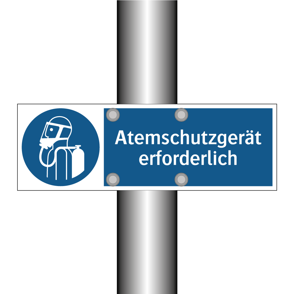 Gebotsschild mit dem Text Atemschutzgerät erforderlich