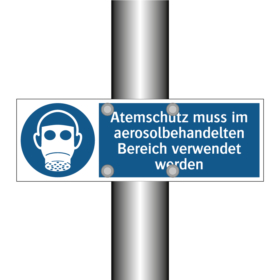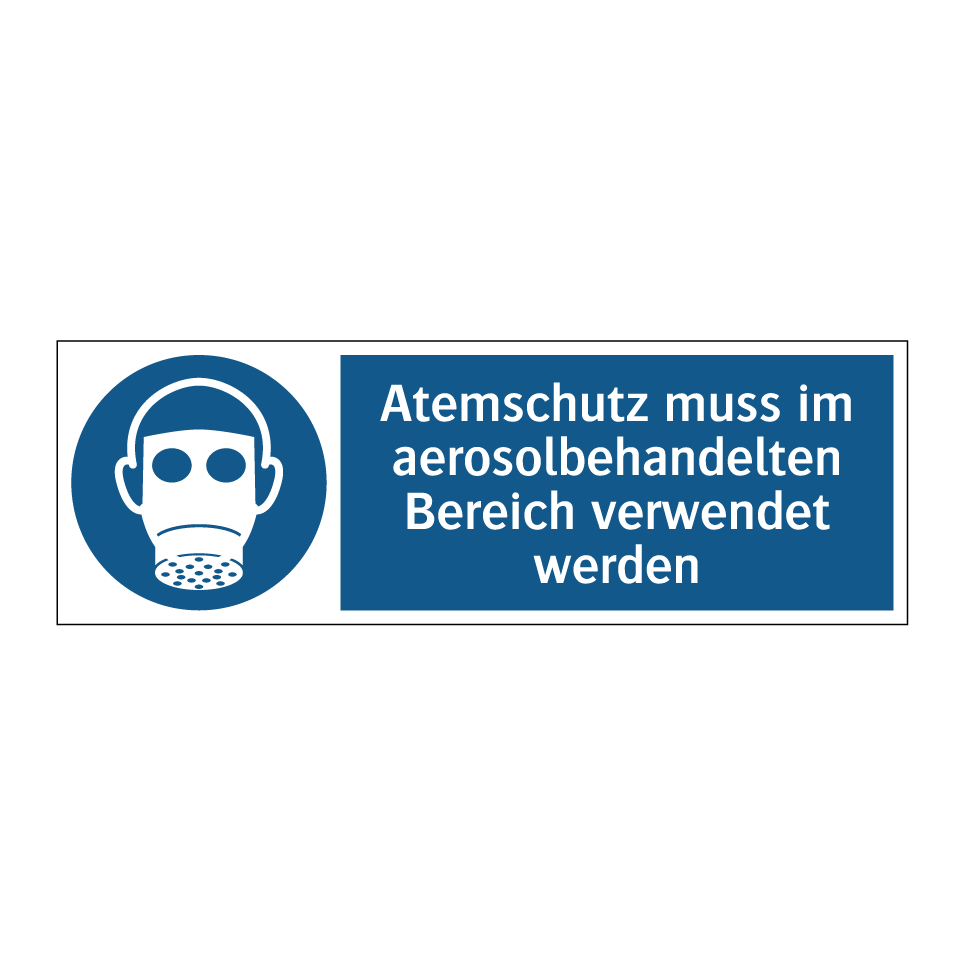 Gebotsschild mit dem Text Atemschutz muss im aerosolbehandelten Bereich verwendet werden