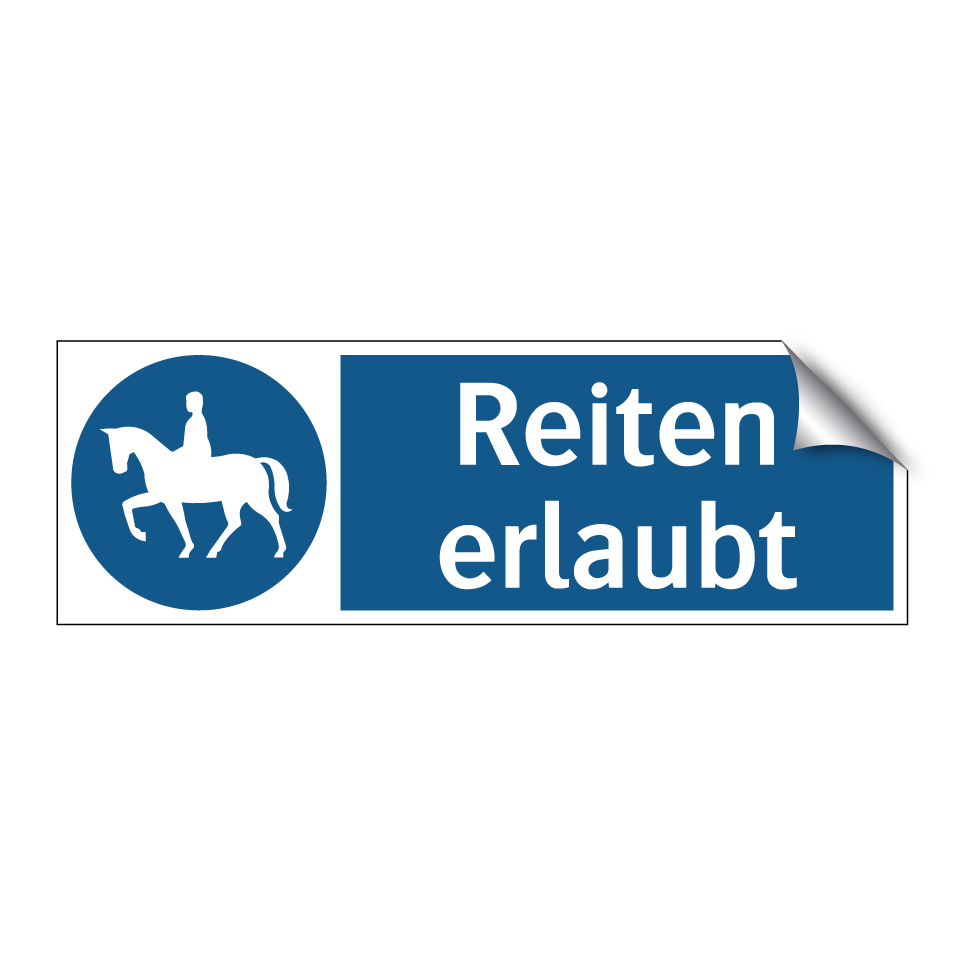 Diese Gebotsschild ist ideal für Reitwege und Reitställe, um klarzustellen, dass Reiten an diesem Ort gestattet ist. Mit ihrer auffälligen blauen Hintergrundfarbe und dem klaren Symbol sorgt sie für sofortige Erkennung und Verständlichkeit. Diese Beschilderung kann an Eingängen zu Reitwegen, in Reitparks oder auf privaten Grundstücken angebracht werden, um Reitern die Erlaubnis zu signalisieren. Sie dient nicht nur der Orientierung, sondern auch der Sicherheit, indem sie klare Anweisungen gibt. Diese Gebotsschild ist ein unverzichtbares Element für alle Bereiche, in denen Reiten erlaubt ist, und trägt zur geordneten Nutzung von Reitflächen bei.