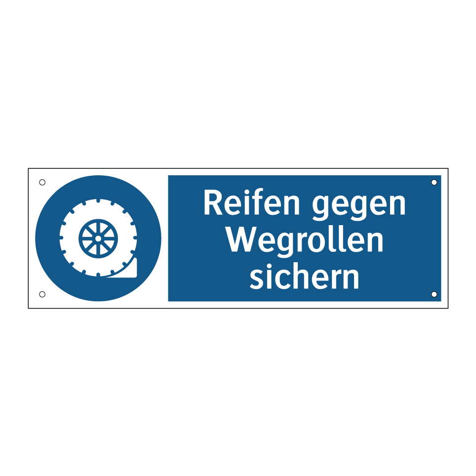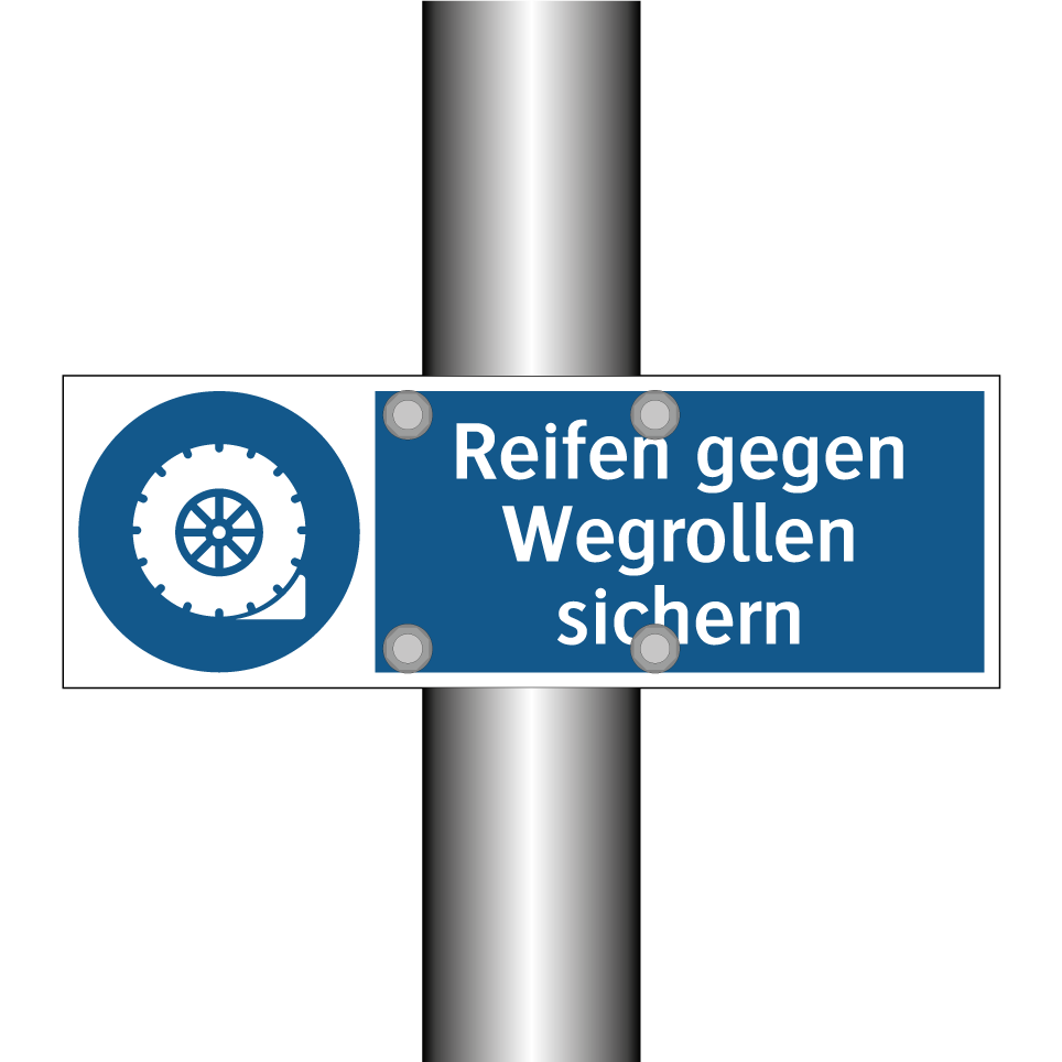 Gebotsschild mit dem Text Reifen gegen Wegrollen sichern