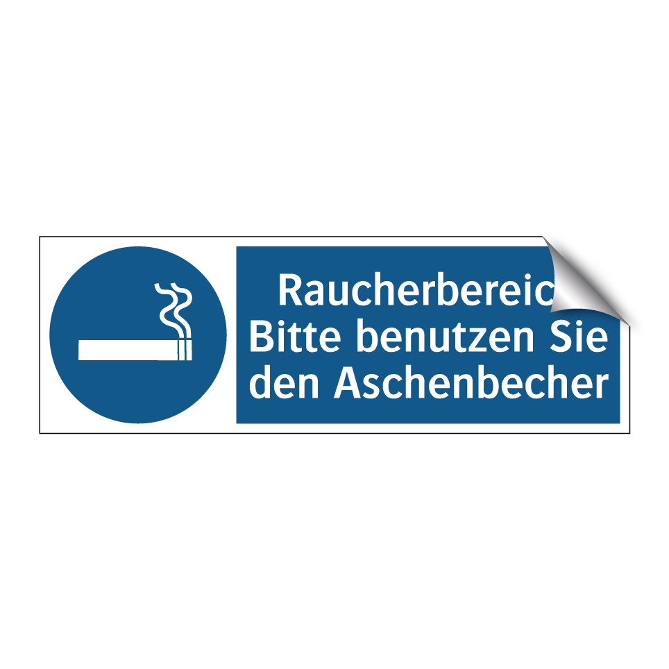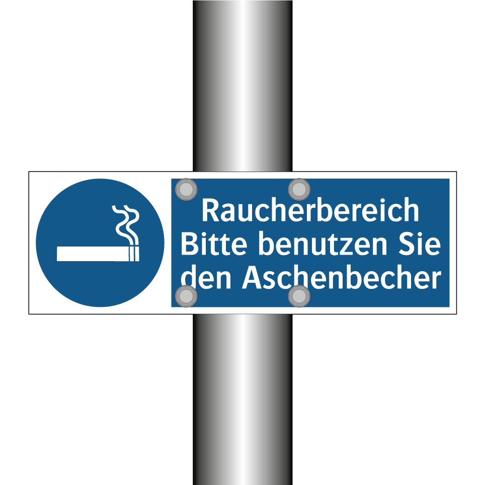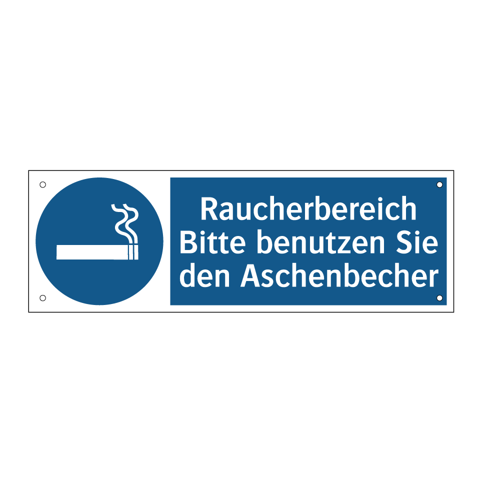 Gebotsschild mit dem Text Raucherbereich Bitte benutzen Sie den Aschenbecher