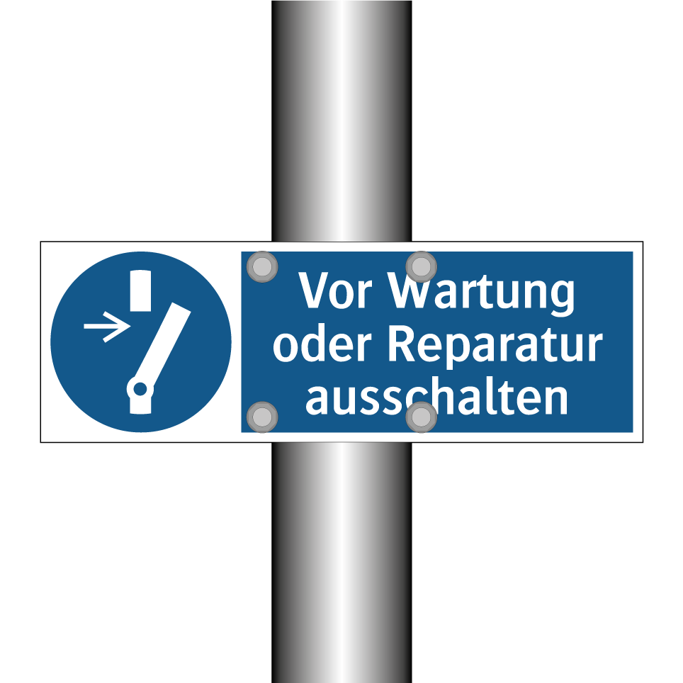 Gebotsschild mit dem Text Vor Wartung oder Reparatur ausschalten
