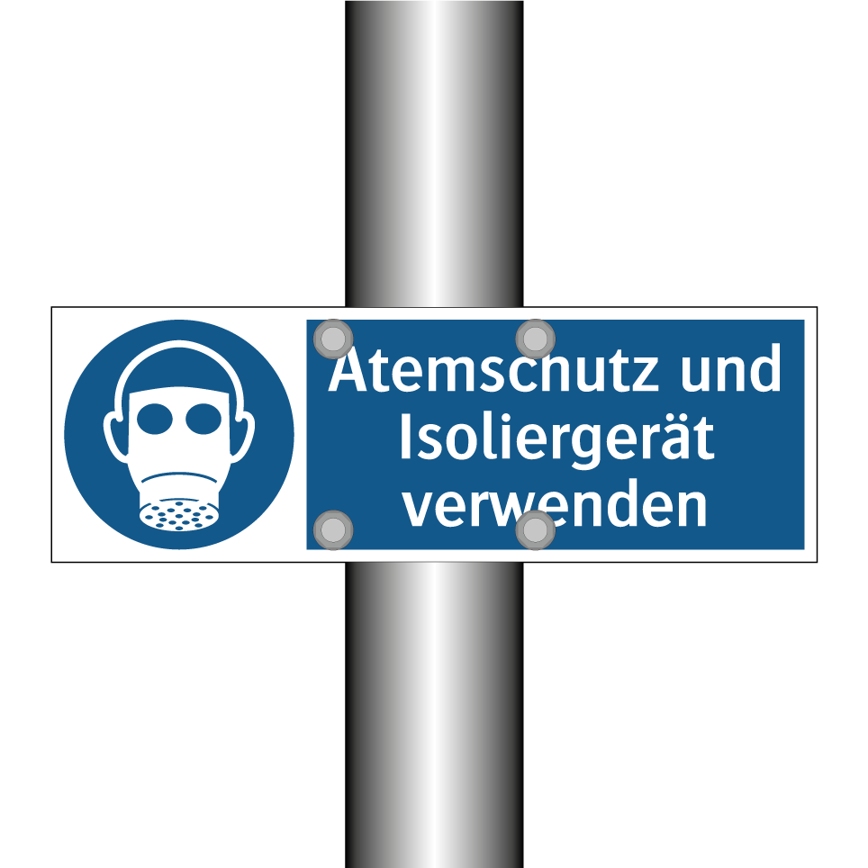 Diese Gebotsschild ist ein unverzichtbares Element für die Sicherheit am Arbeitsplatz. Es weist darauf hin, dass das Tragen von Atemschutz und Isoliergeräten in bestimmten Bereichen obligatorisch ist. Ideal für den Einsatz in industriellen Umgebungen, Baustellen oder Laboratorien, wo gefährliche Stoffe oder Partikel in der Luft vorhanden sein können. Die klare blaue Hintergrundfarbe und die weiße Schrift sorgen dafür, dass die Anweisung sofort ins Auge fällt und leicht verständlich ist. Platzieren Sie dieses Schild an Eingängen zu Gefahrenzonen oder in Bereichen, in denen Schutzmaßnahmen erforderlich sind, um die Sicherheit der Mitarbeiter zu gewährleisten.
