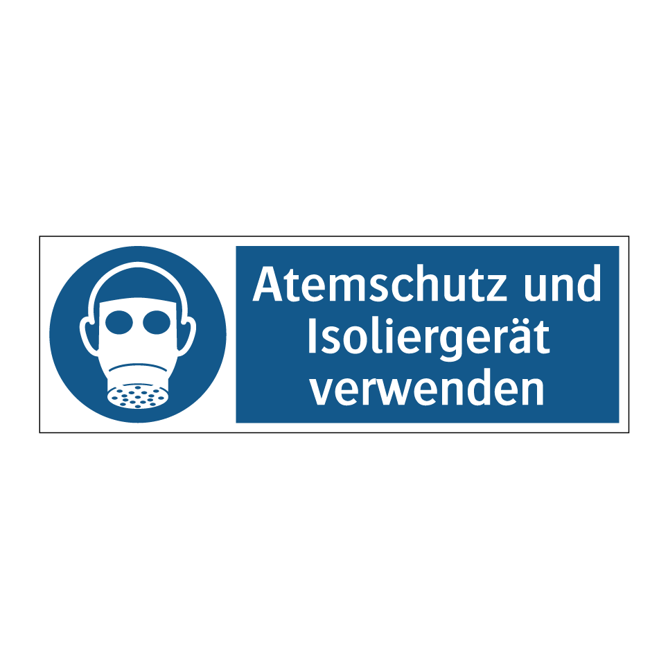 Gebotsschild mit dem Text Atemschutz und Isoliergerät verwenden