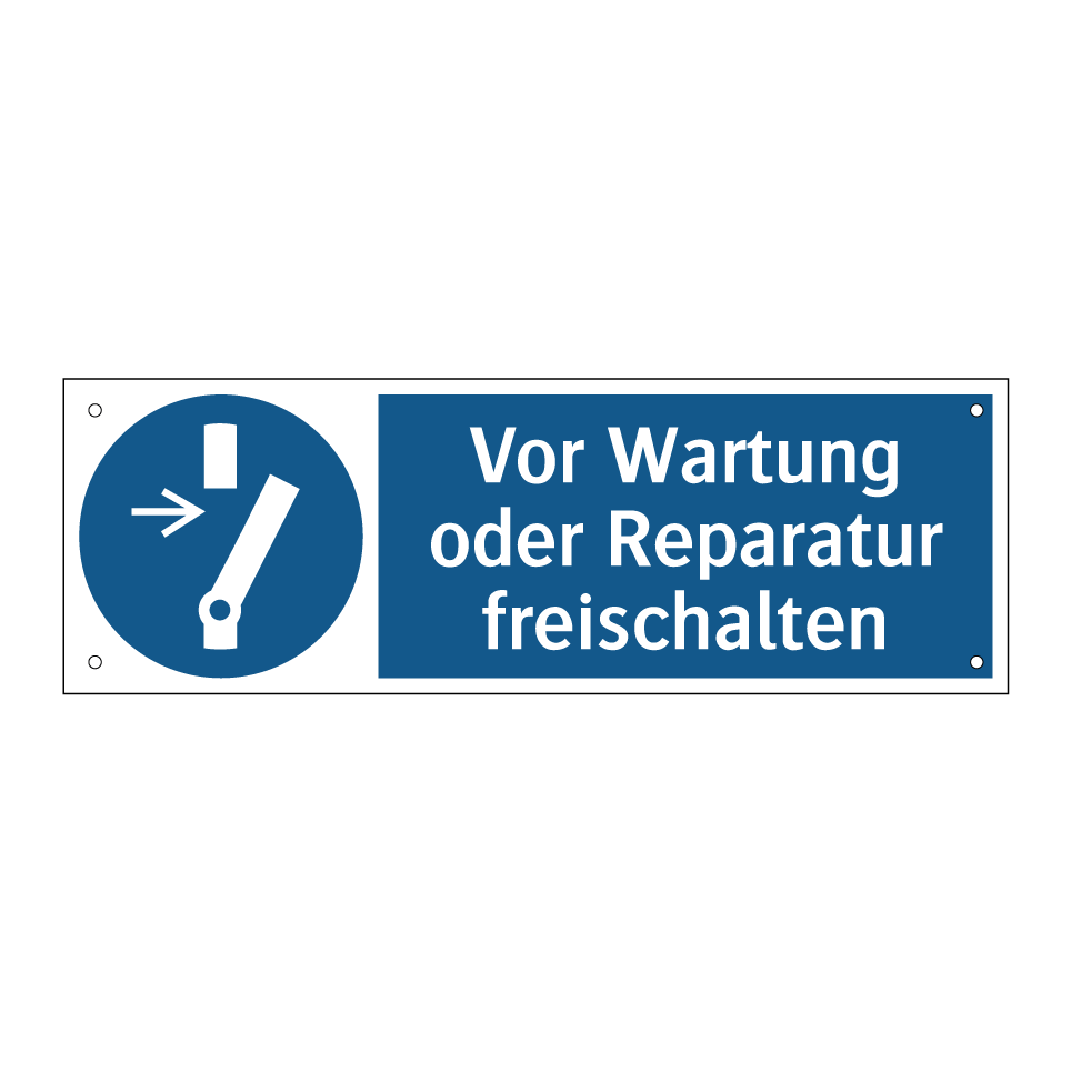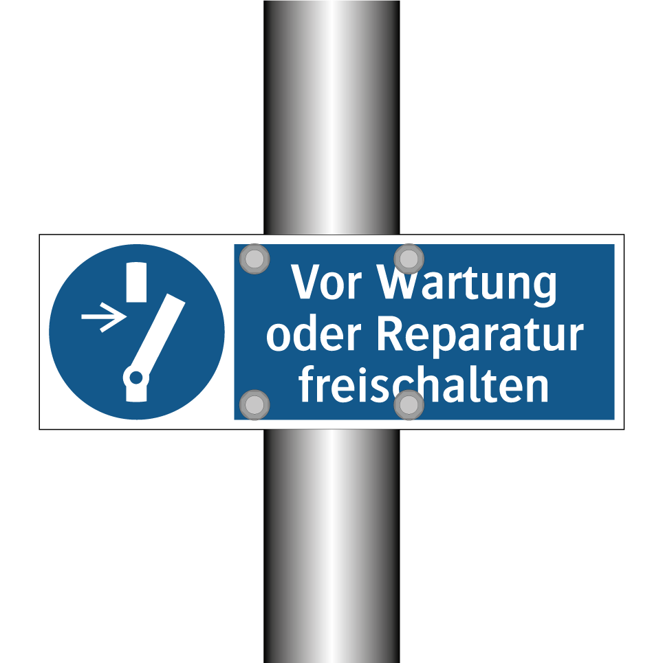 Gebotsschild mit dem Text Vor Wartung oder Reparatur freischalten