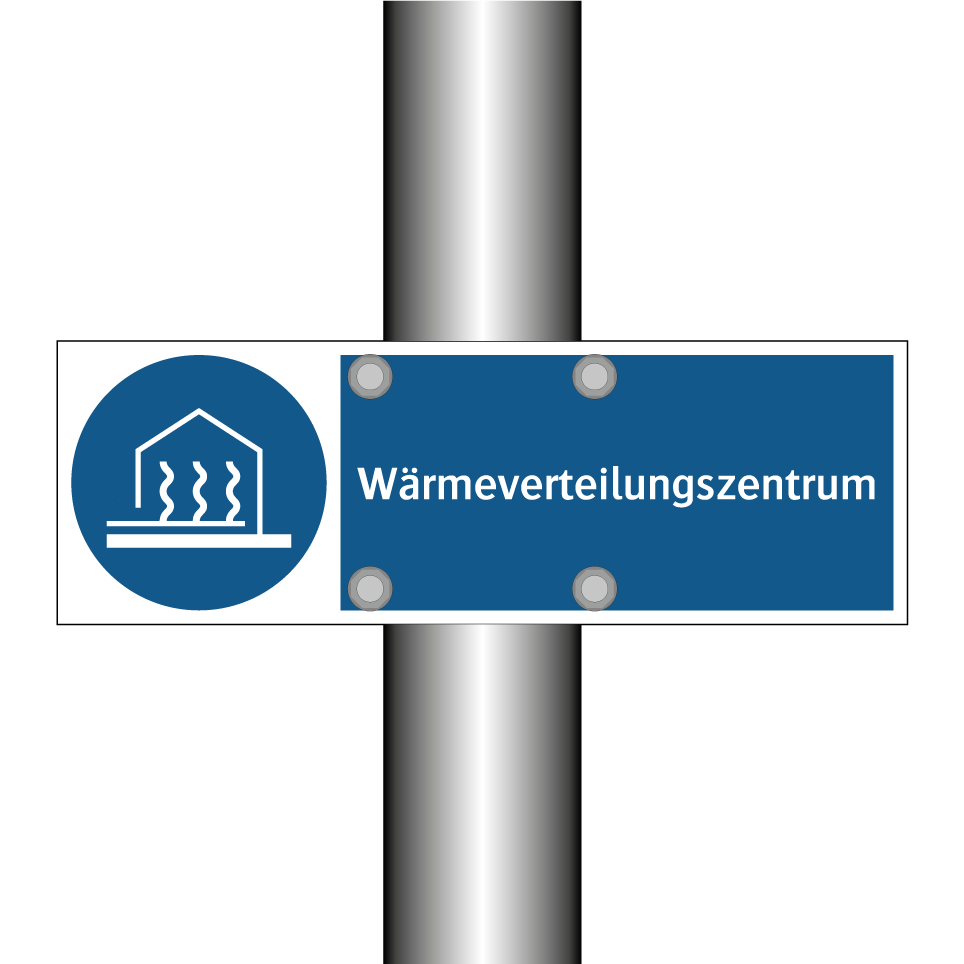 Gebotsschild mit dem Text Wärmeverteilungszentrum