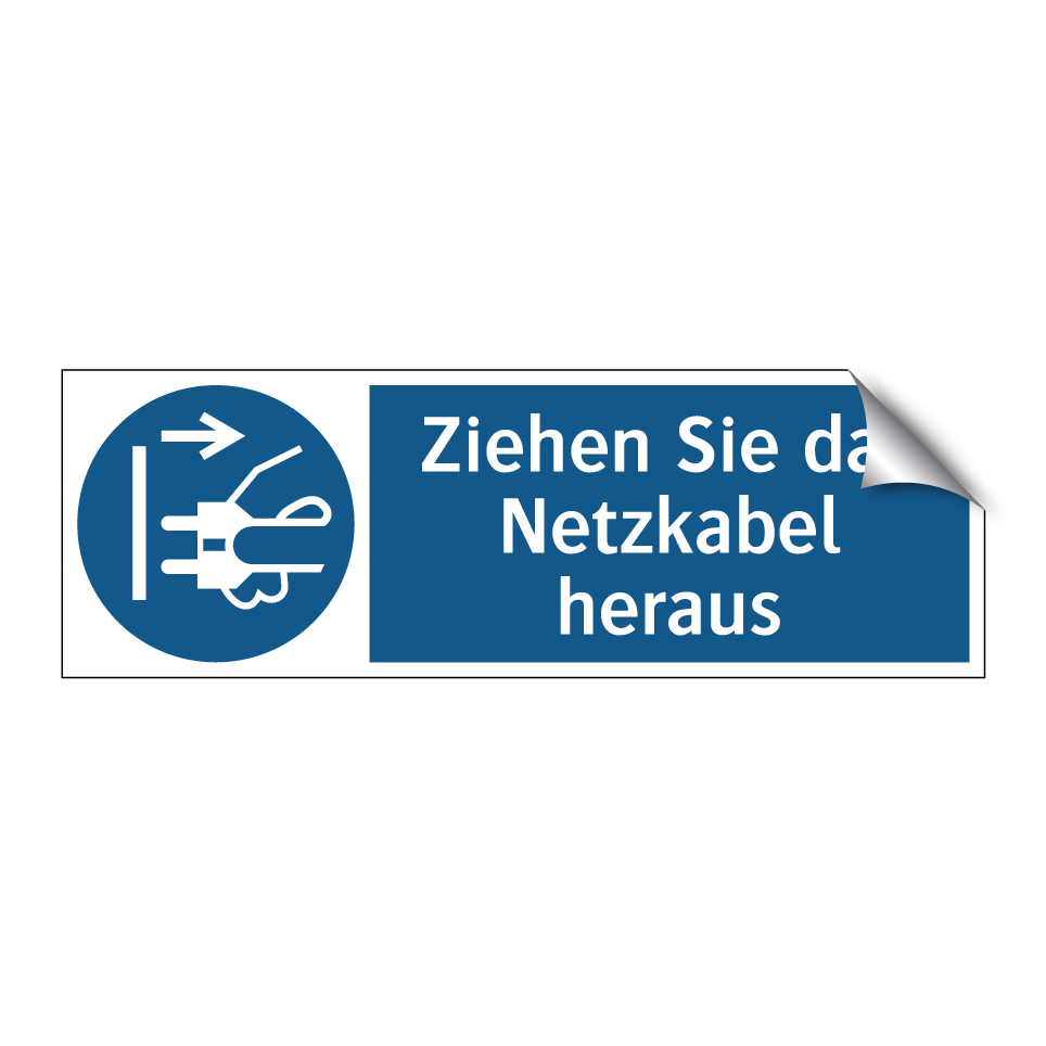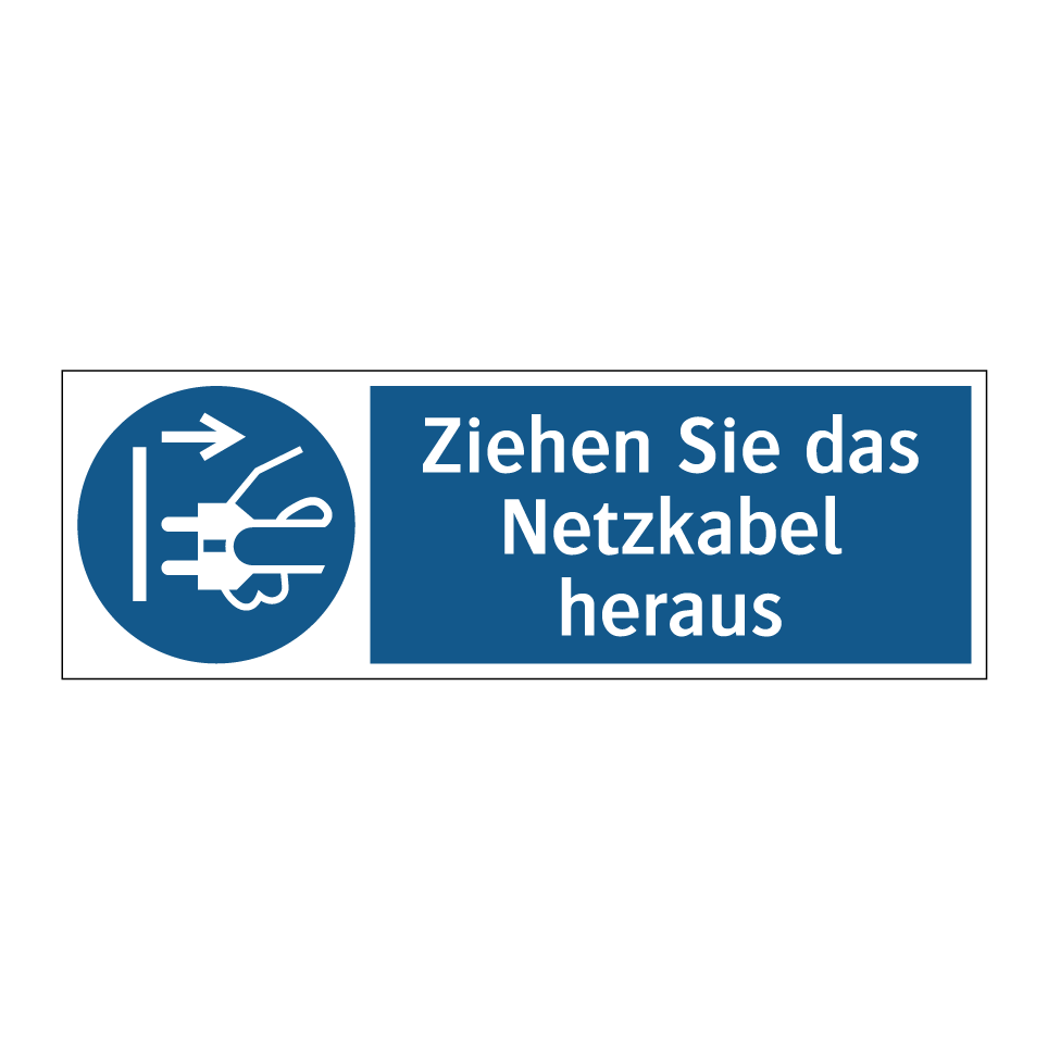 Gebotsschild mit dem Text Ziehen Sie das Netzkabel heraus