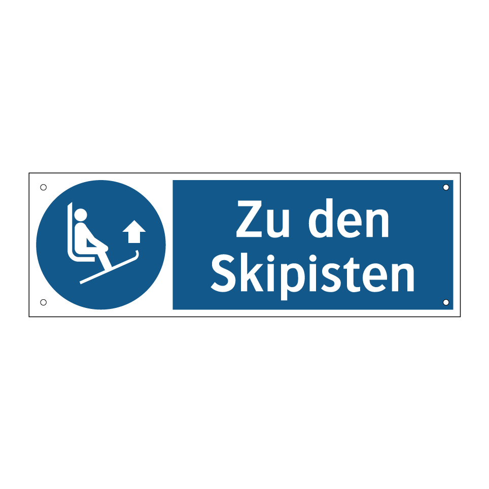 Diese Gebotsschild ist ideal für Wintersportgebiete und sorgt dafür, dass Besucher den richtigen Weg zu den Skipisten finden. Mit ihrer auffälligen blauen Hintergrundfarbe und der klaren weißen Schrift zieht sie sofort die Aufmerksamkeit auf sich. Diese Beschilderung ist besonders nützlich an Kreuzungen, in Skigebieten oder an Eingängen zu Skiliften, um den Skifahrern eine klare Orientierung zu bieten. Sie kann an strategischen Punkten entlang von Wanderwegen oder in der Nähe von Parkplätzen angebracht werden, um den Zugang zu den Pisten zu erleichtern. Diese Gebotsschilder sind ein unverzichtbares Element für eine reibungslose Navigation in jedem Skigebiet.