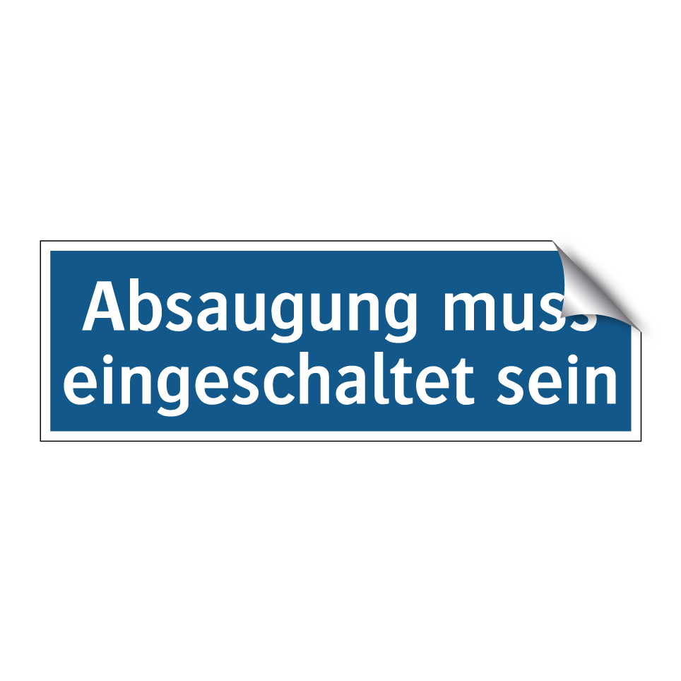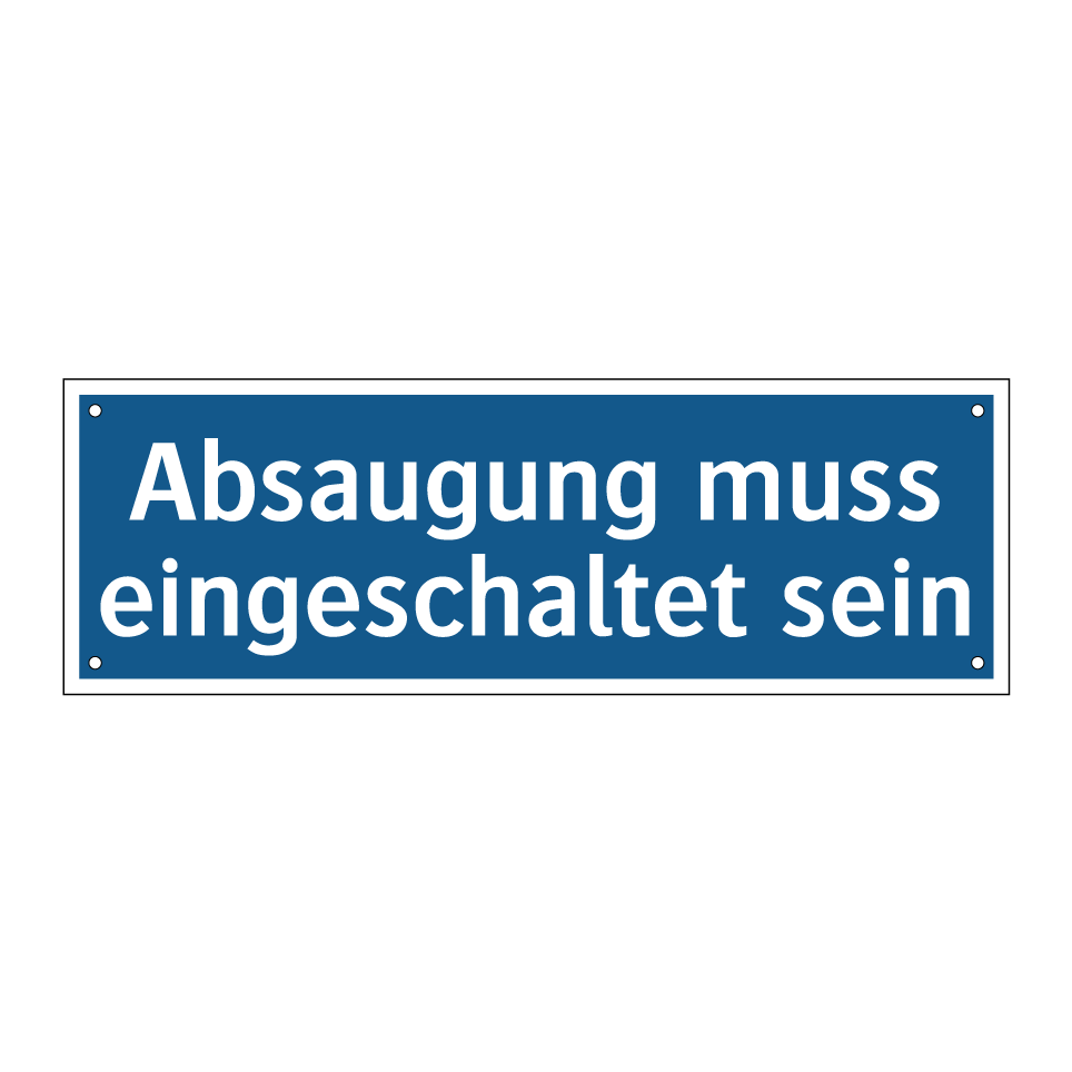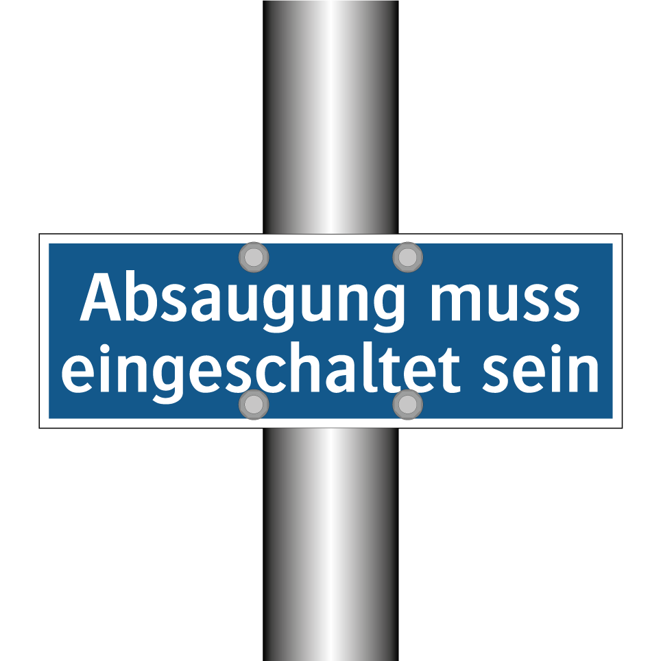 Gebotsschild mit dem Text Absaugung muss eingeschaltet sein