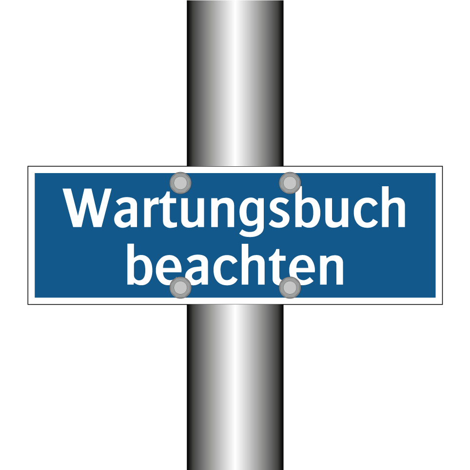 Gebotsschild mit dem Text Wartungsbuch beachten