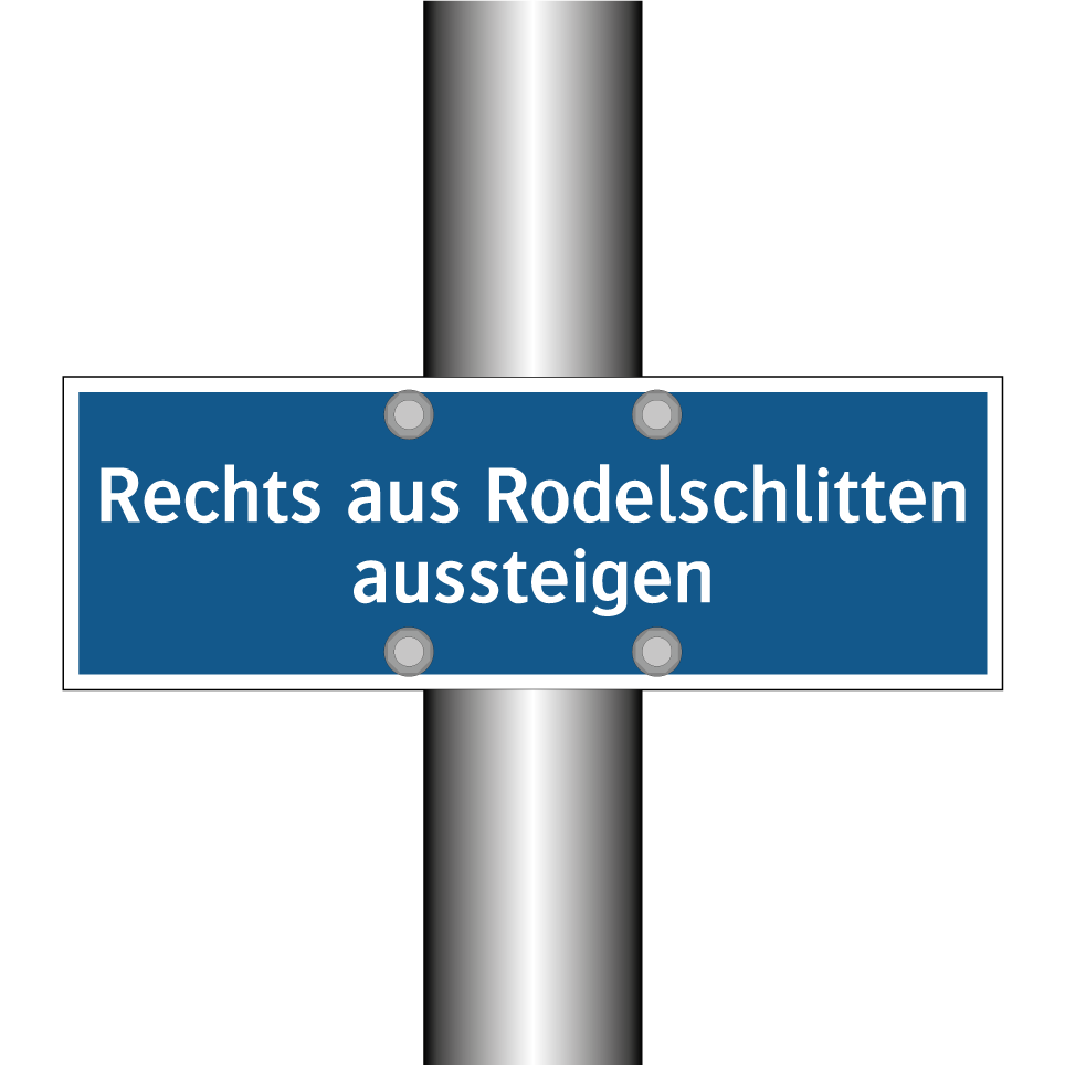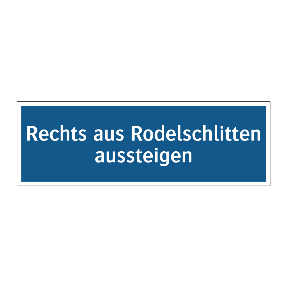 Gebotsschild mit dem Text Rechts aus Rodelschlitten aussteigen