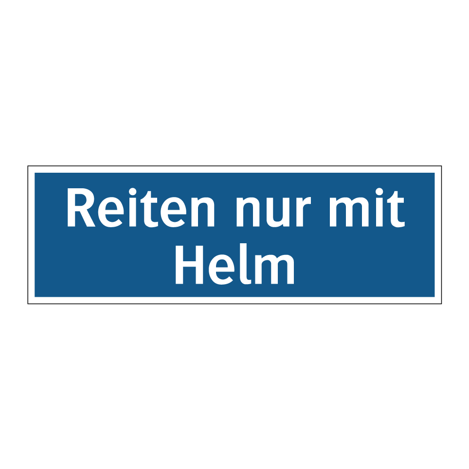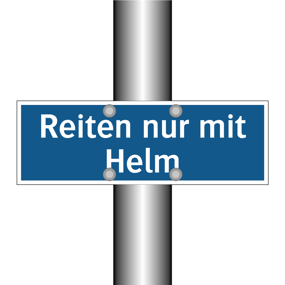 Gebotsschild mit dem Text Reiten nur mit Helm