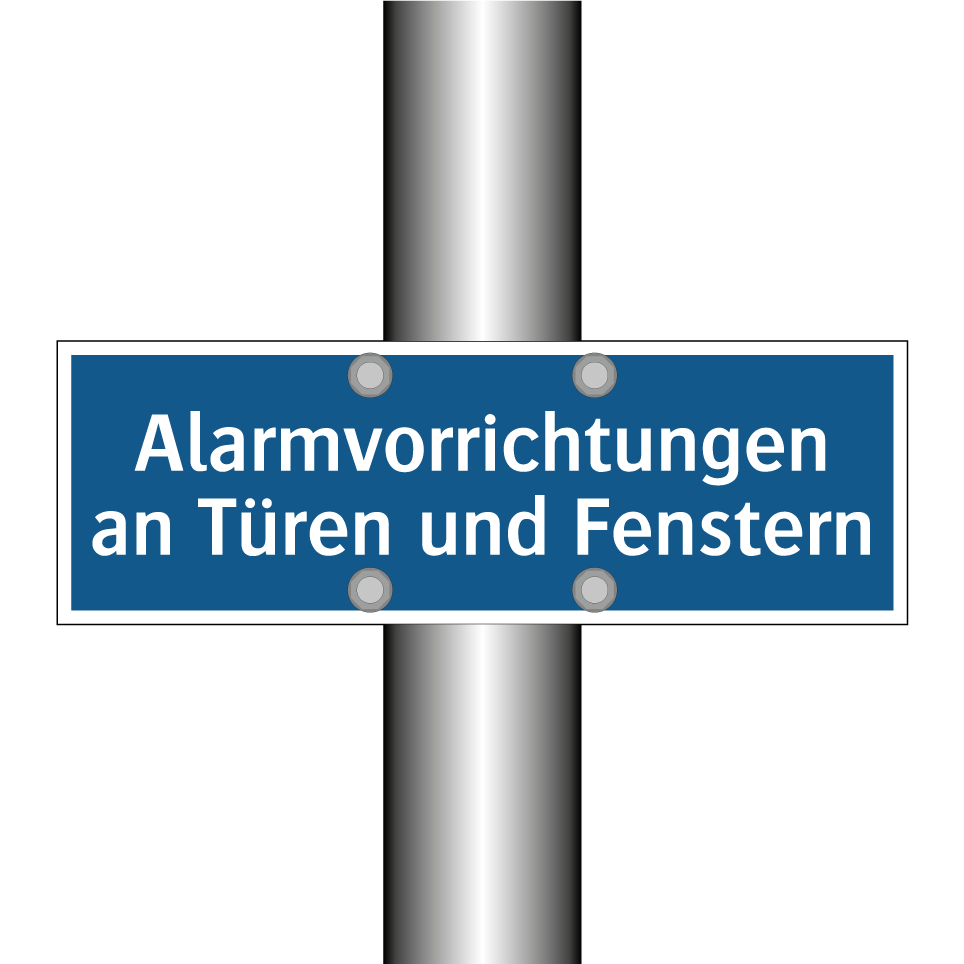 Gebotsschild mit dem Text Alarmvorrichtungen an Türen und Fenstern