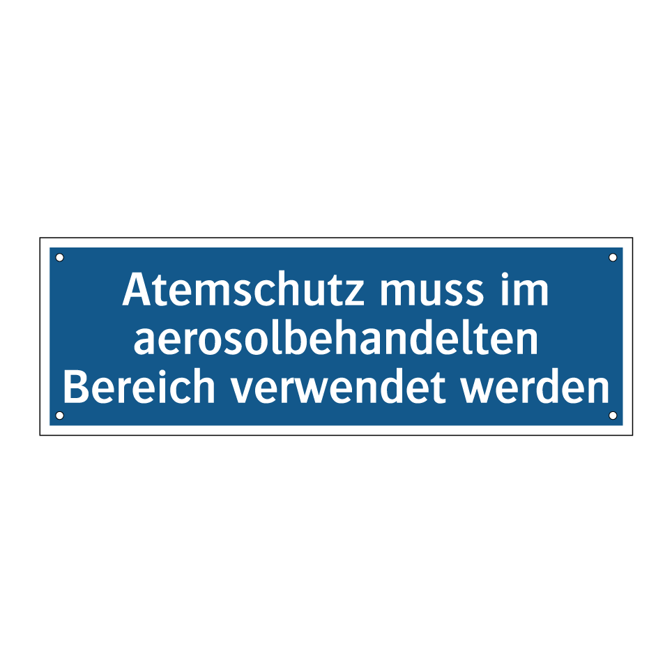 Diese Gebotsschild ist unverzichtbar in Bereichen, in denen Aerosole behandelt werden. Sie dient dazu, die Sicherheit der Mitarbeiter zu gewährleisten, indem sie darauf hinweist, dass Atemschutzmasken getragen werden müssen. Diese Sicherheitsmaßnahme ist besonders wichtig in Laboren, Produktionsstätten oder anderen Arbeitsumgebungen, in denen die Exposition gegenüber Aerosolen ein Risiko darstellen kann. Die Gebotsschilder können strategisch an Eingängen, in Fluren oder direkt in den betroffenen Arbeitsbereichen platziert werden, um sicherzustellen, dass alle Personen auf die Notwendigkeit des Atemschutzes aufmerksam gemacht werden. Durch die klare blaue und weiße Gestaltung ist die Botschaft leicht erkennbar und verständlich.