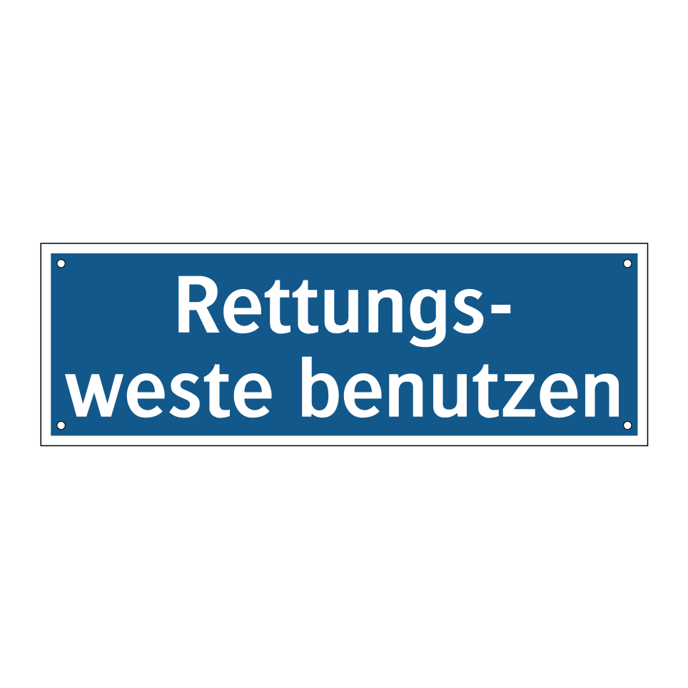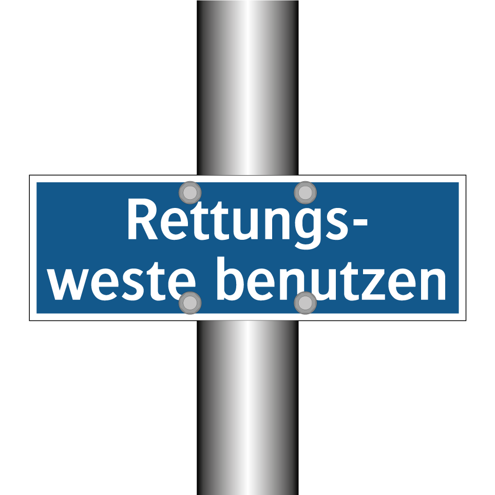 Gebotsschild mit dem Text Rettungs- weste benutzen