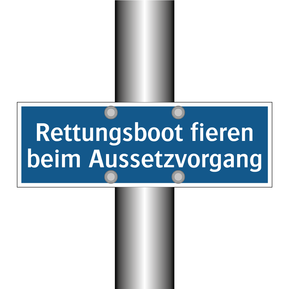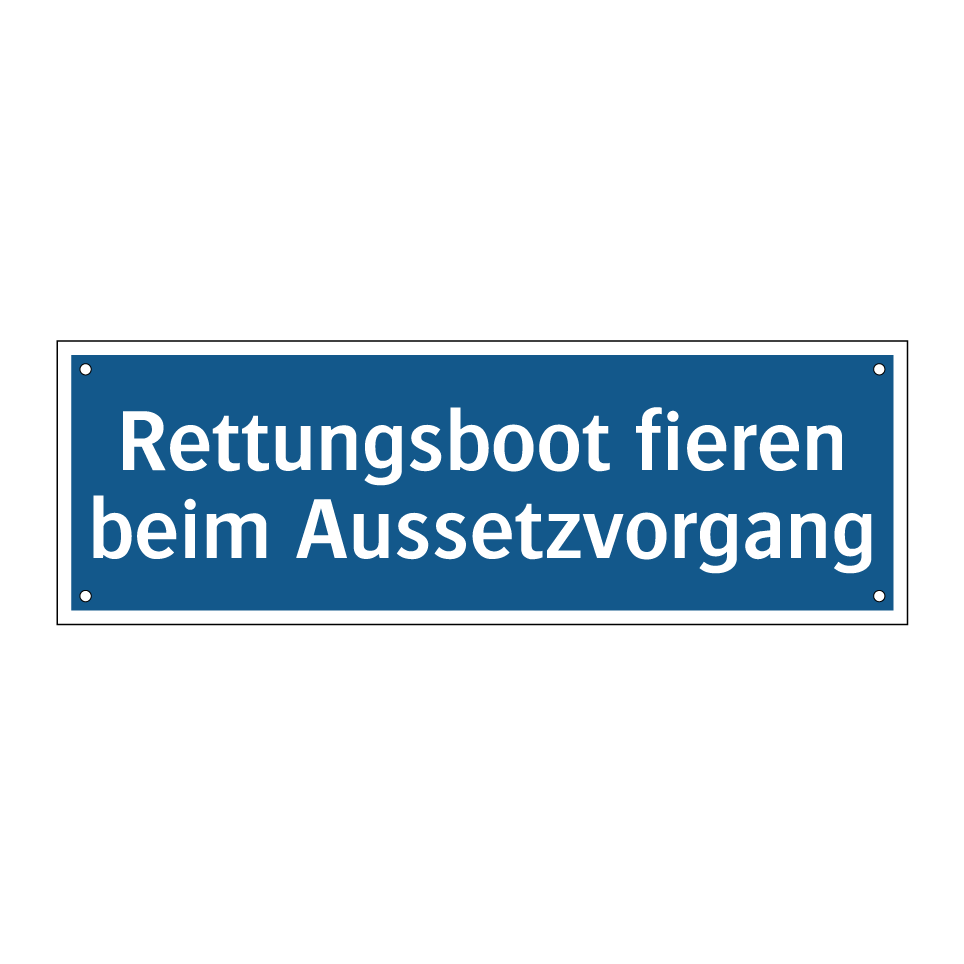 Gebotsschild mit dem Text Rettungsboot fieren beim Aussetzvorgang
