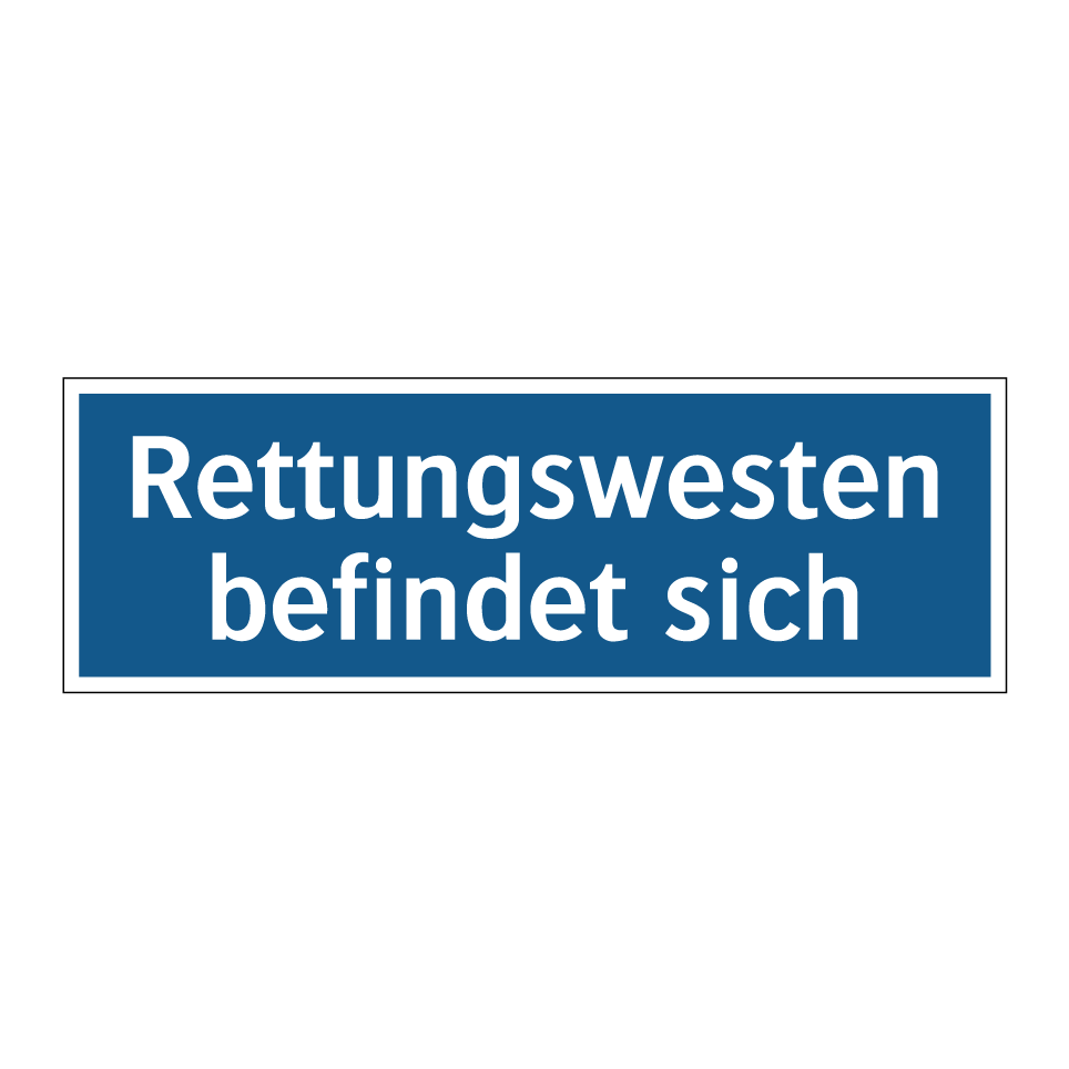 Diese Gebotsschild ist ein unverzichtbares Element für die Sicherheit auf Schiffen und in maritimen Umgebungen. Sie weist klar und deutlich auf den Standort der Rettungswesten hin, was im Notfall lebensrettend sein kann. Ideal für den Einsatz auf Fähren, Kreuzfahrtschiffen oder in Hafenanlagen, sorgt sie dafür, dass Passagiere und Besatzung schnell und effizient auf die lebenswichtige Sicherheitsausrüstung zugreifen können. Die auffällige blaue Hintergrundfarbe mit weißem Text gewährleistet, dass die Information auch aus der Ferne gut sichtbar ist. Platzieren Sie diese Gebotsschild an strategischen Punkten, um die Sicherheit und das Wohlbefinden aller an Bord zu gewährleisten.