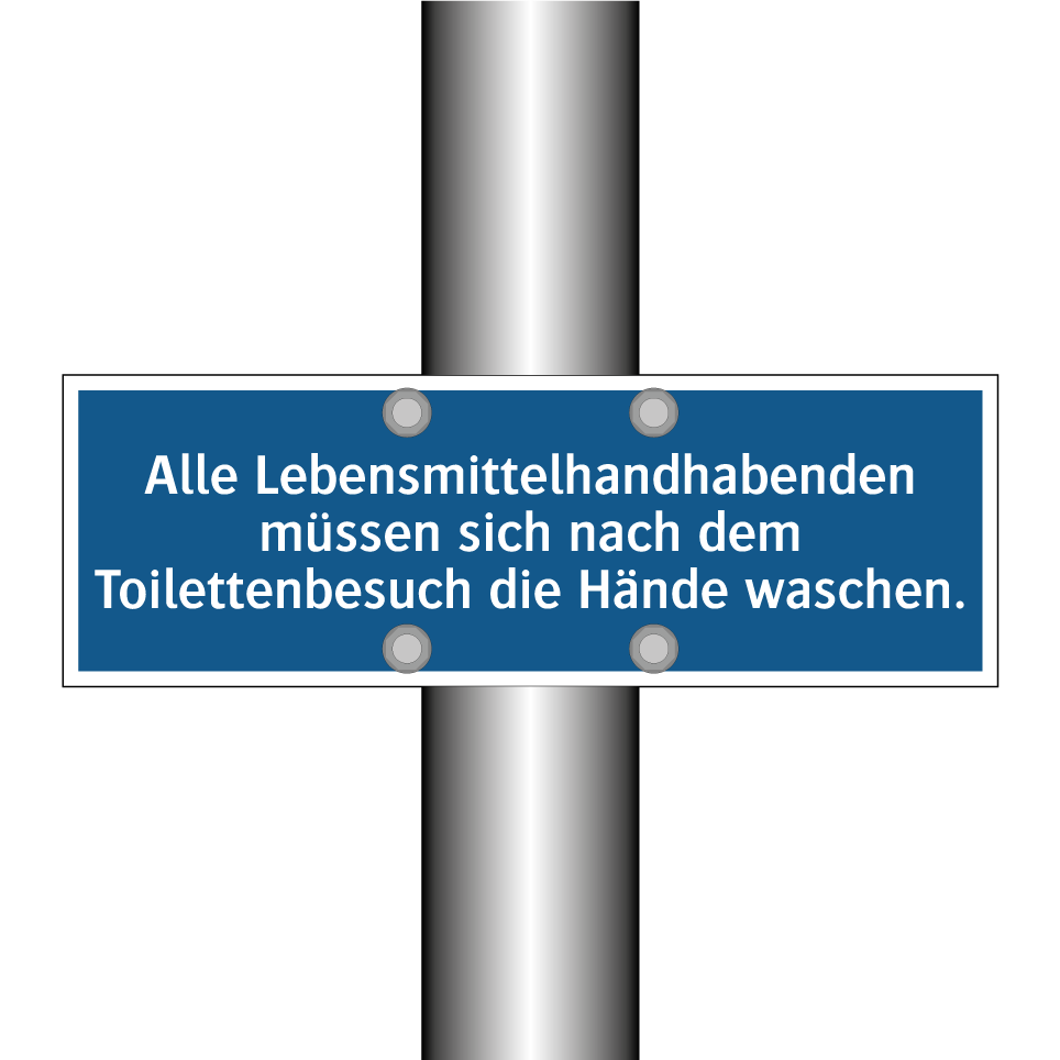 Gebotsschild mit dem Text Alle Lebensmittelhandhabenden müssen sich nach dem Toilettenbesuch die Hände waschen.