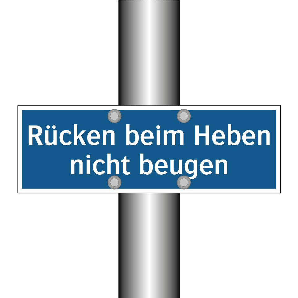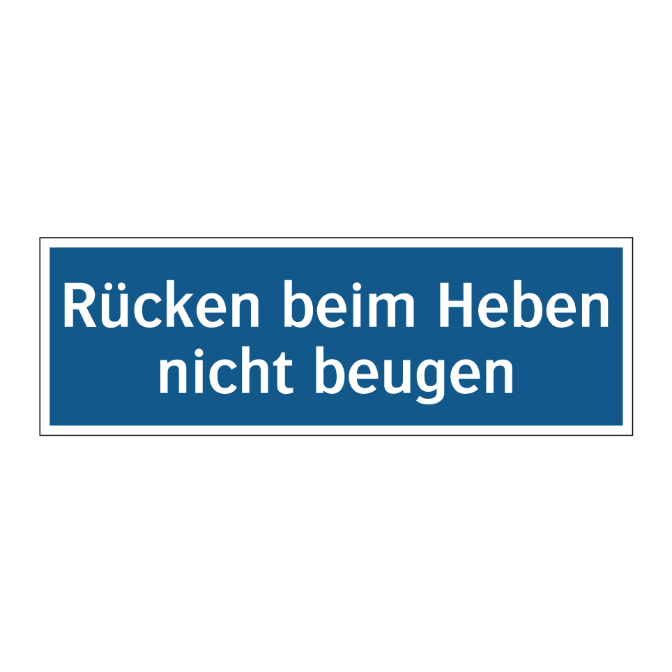 Gebotsschild mit dem Text Rücken beim Heben nicht beugen
