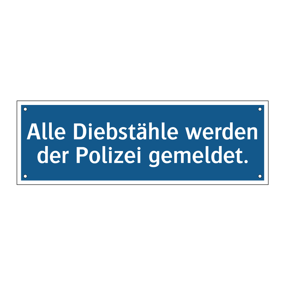 Gebotsschild mit dem Text Alle Diebstähle werden der Polizei gemeldet.