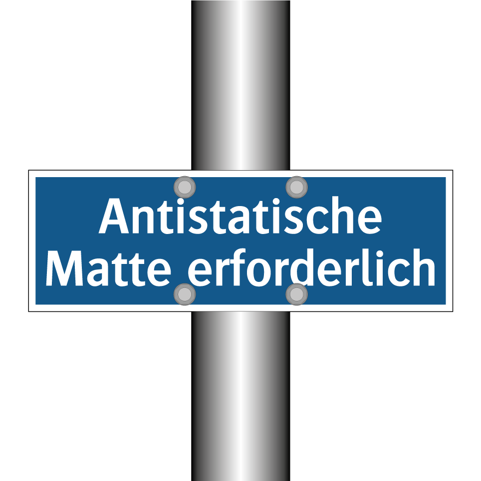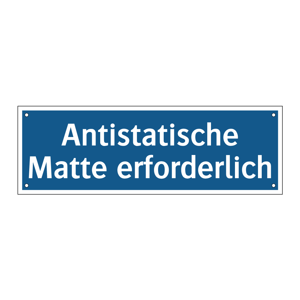 Gebotsschild mit dem Text Antistatische Matte erforderlich