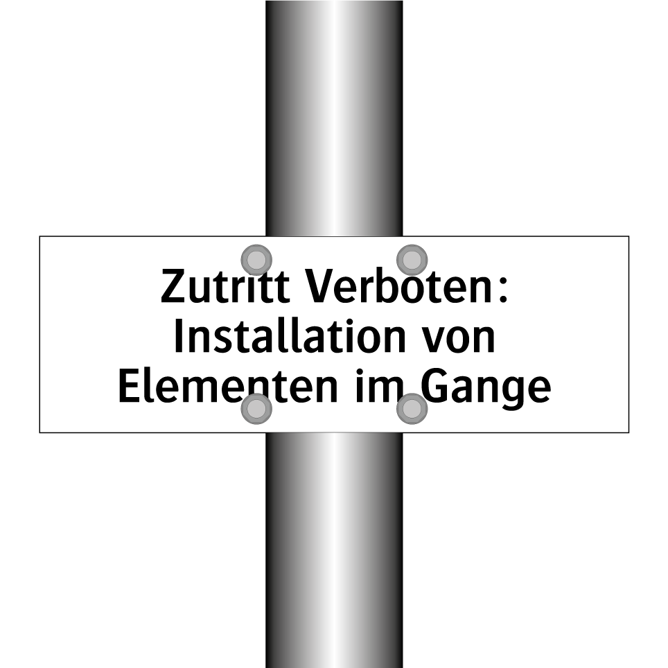 Verbotsschild mit dem Text Zutritt Verboten: Installation von Elementen im Gange