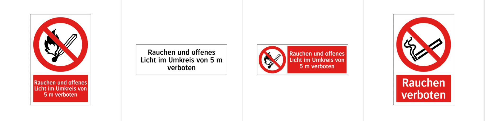 Findest du nicht, was du suchst? Erstelle dein eigenes Verbotsschild mit individuellem Text und Symbolauswahl.