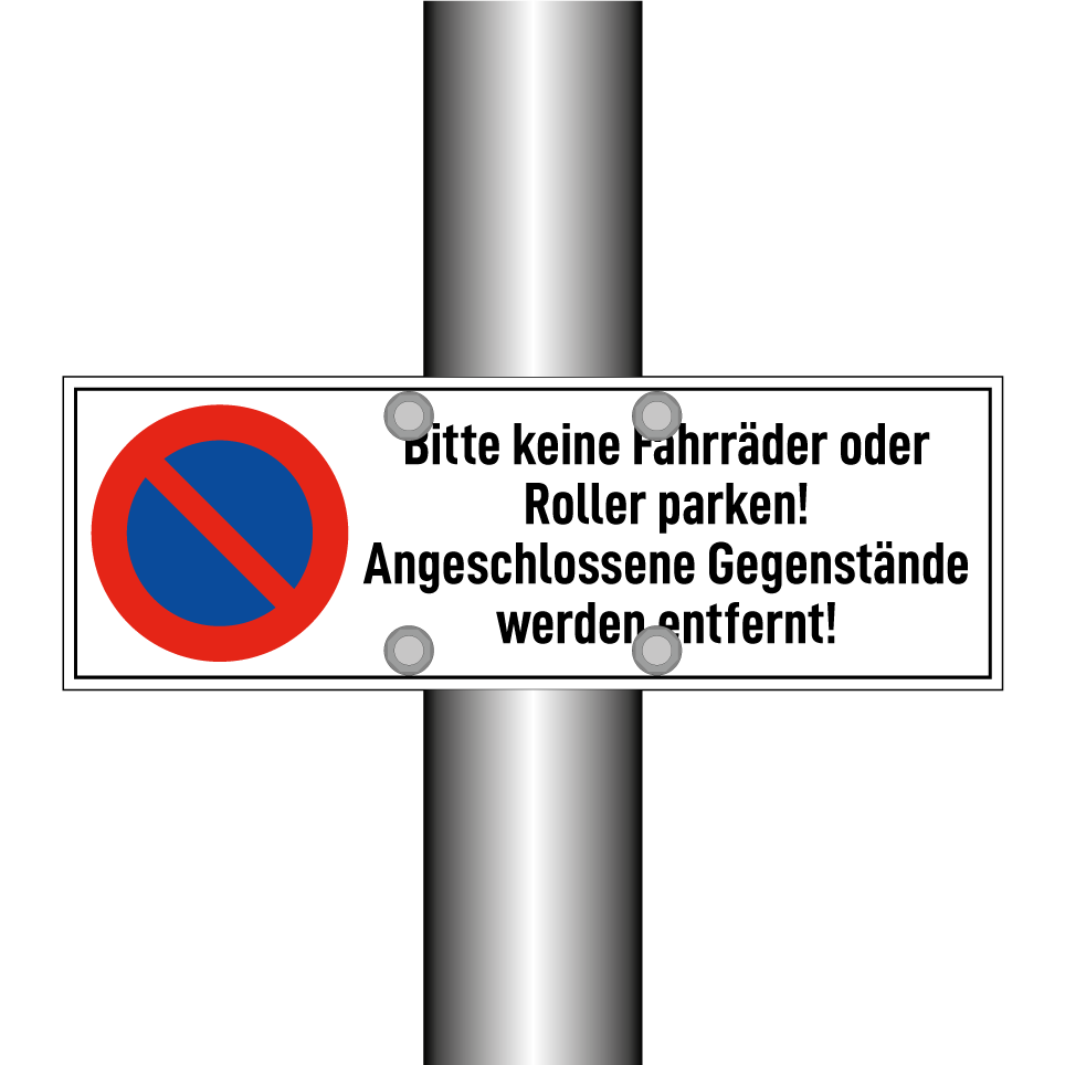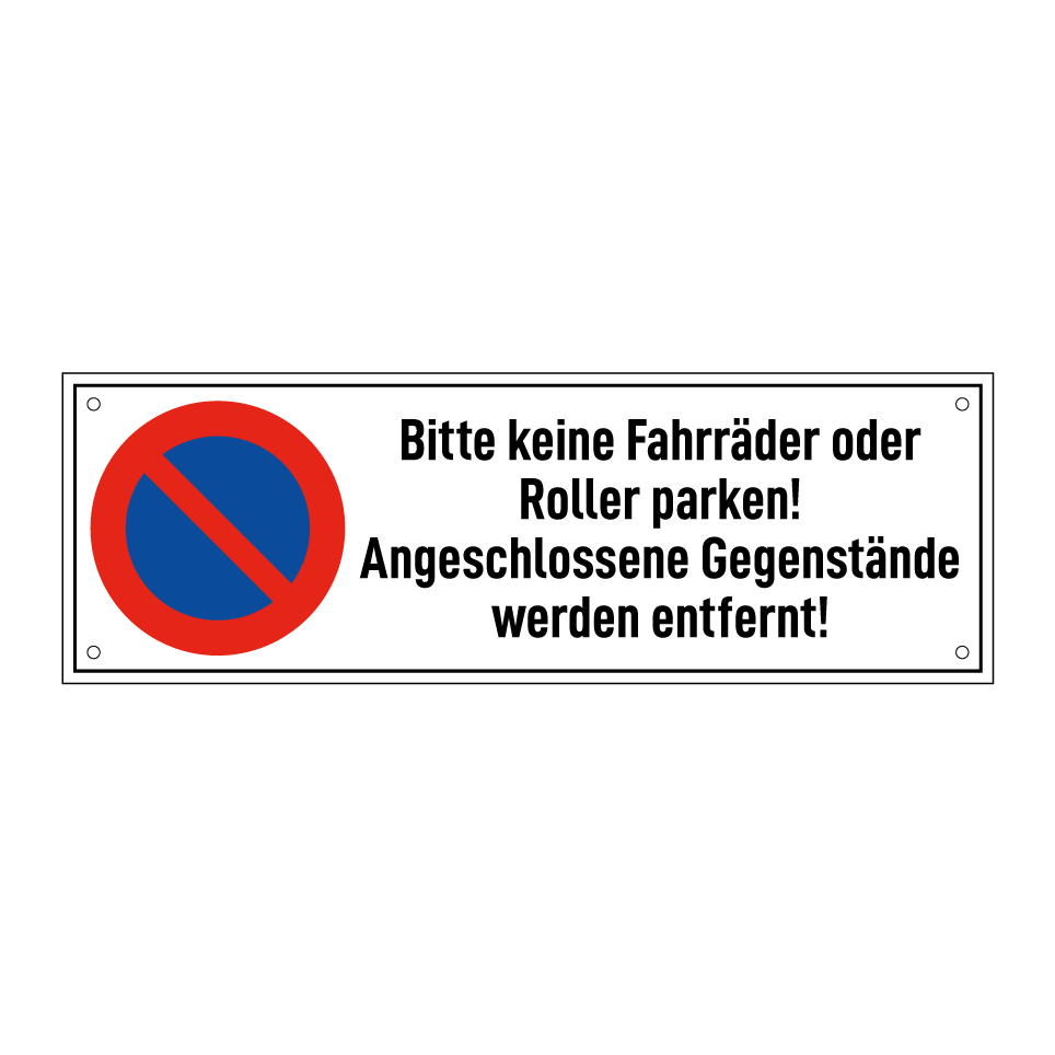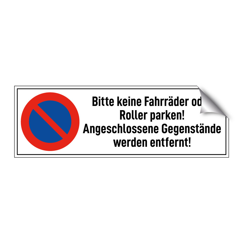 Bitte keine Fahrräder oder Roller parken! Angeschlossene Gegenstände werden entfernt!