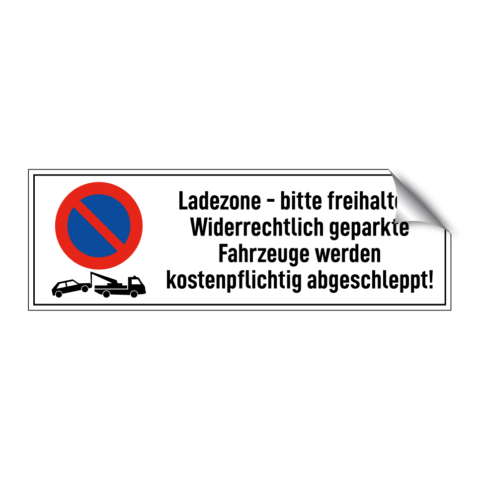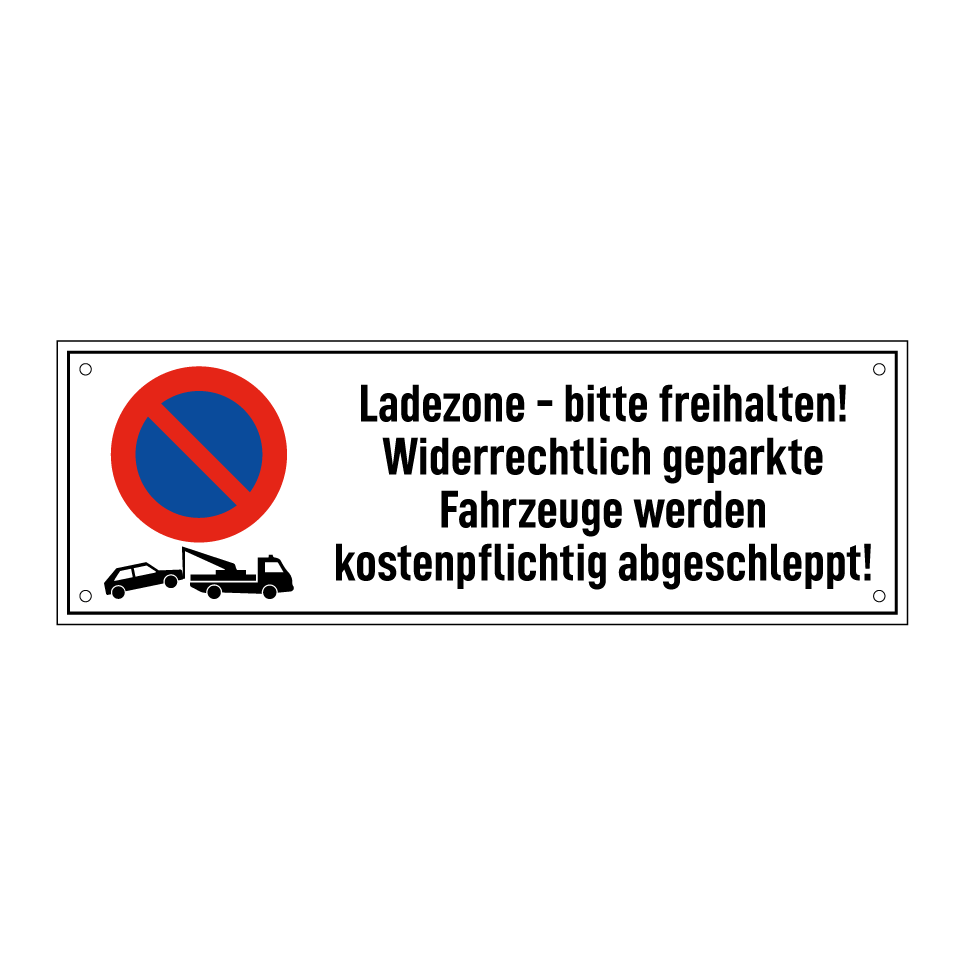 Ladezone - bitte freihalten! Widerrechtlich geparkte Fahrzeuge werden kostenpflichtig abgeschleppt!