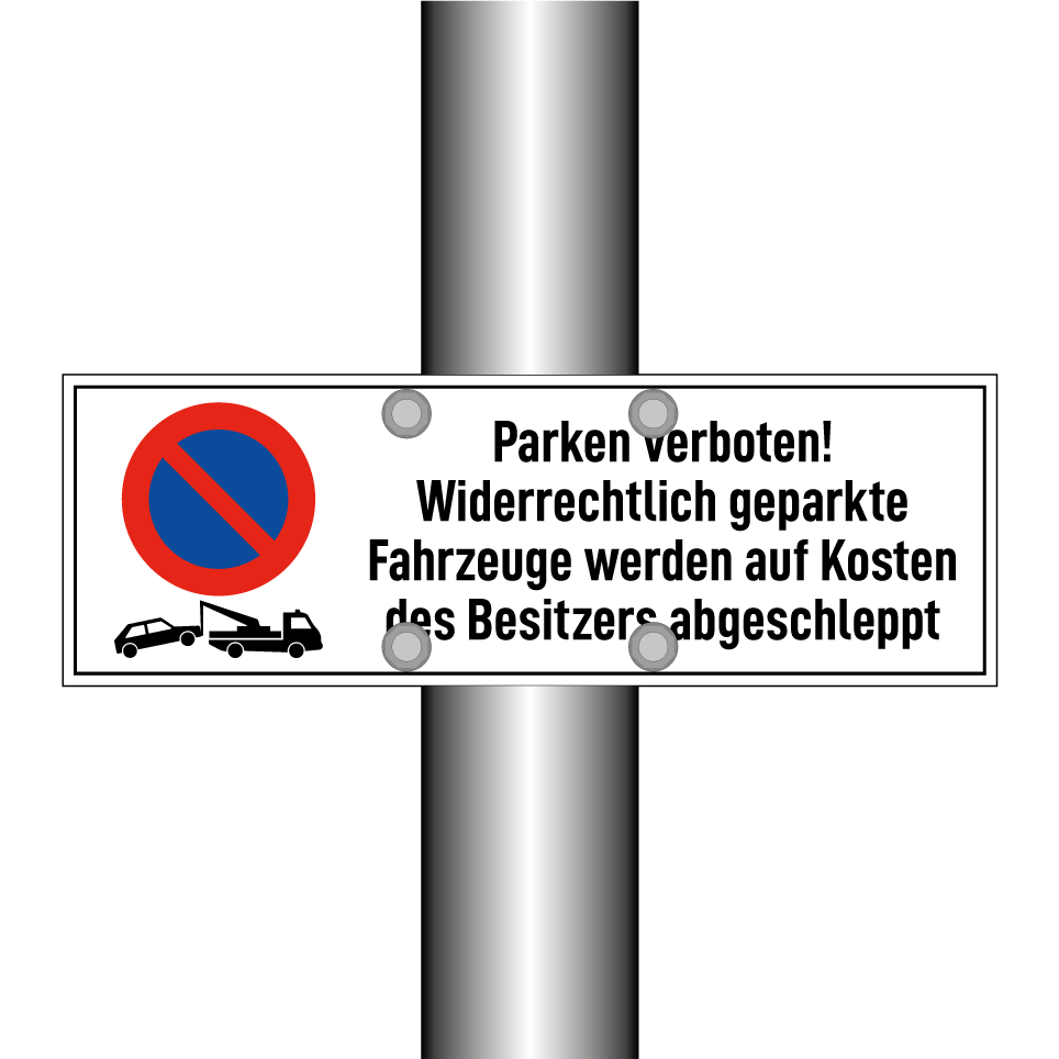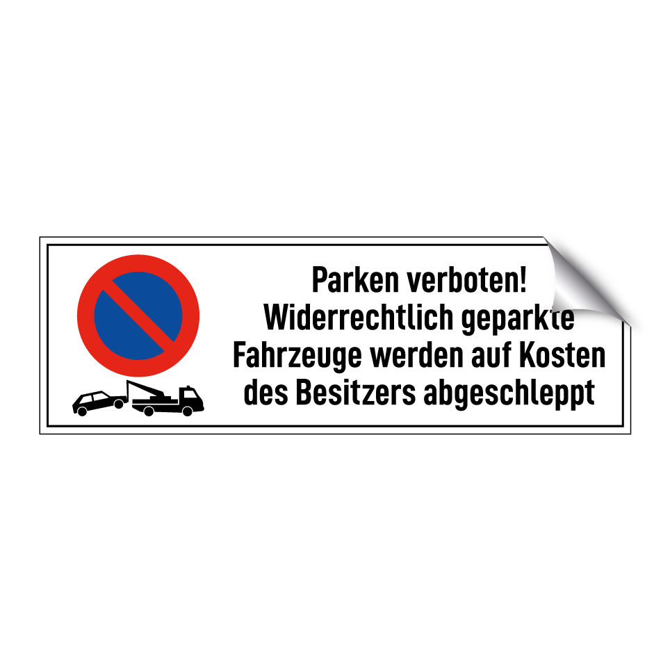 Parken verboten! Widerrechtlich geparkte Fahrzeuge werden auf Kosten des Besitzers abgeschleppt