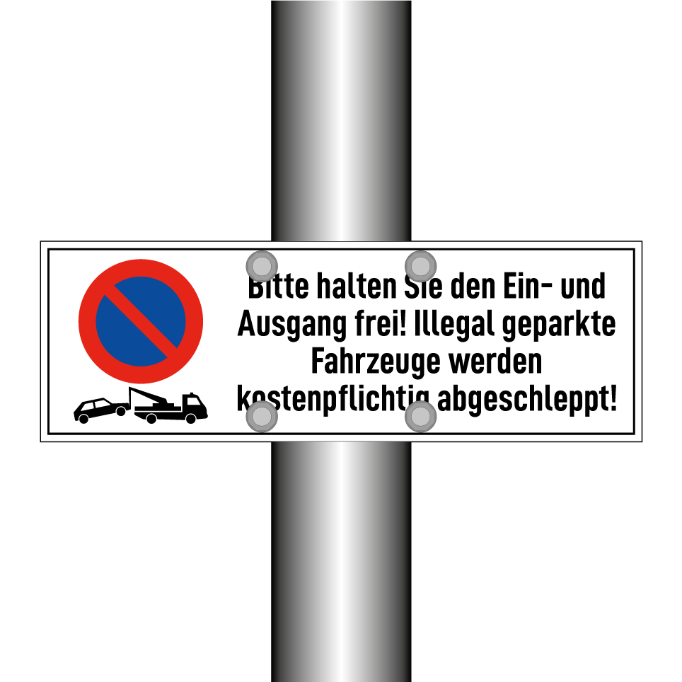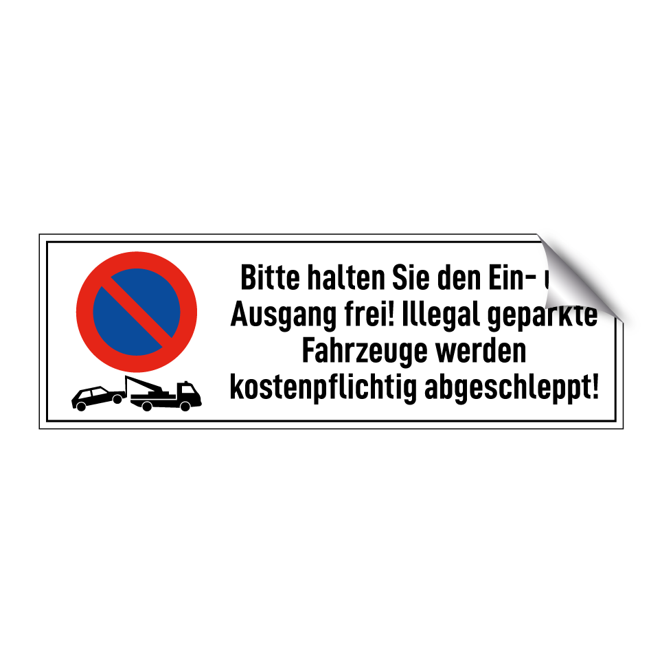 Bitte halten Sie den Ein- und Ausgang frei! Illegal geparkte Fahrzeuge werden kostenpflichtig abgeschleppt!