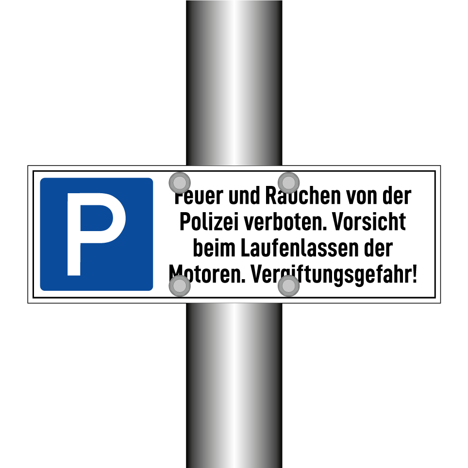 Feuer und Rauchen von der Polizei verboten. Vorsicht beim Laufenlassen der Motoren. Vergiftungsgefahr!