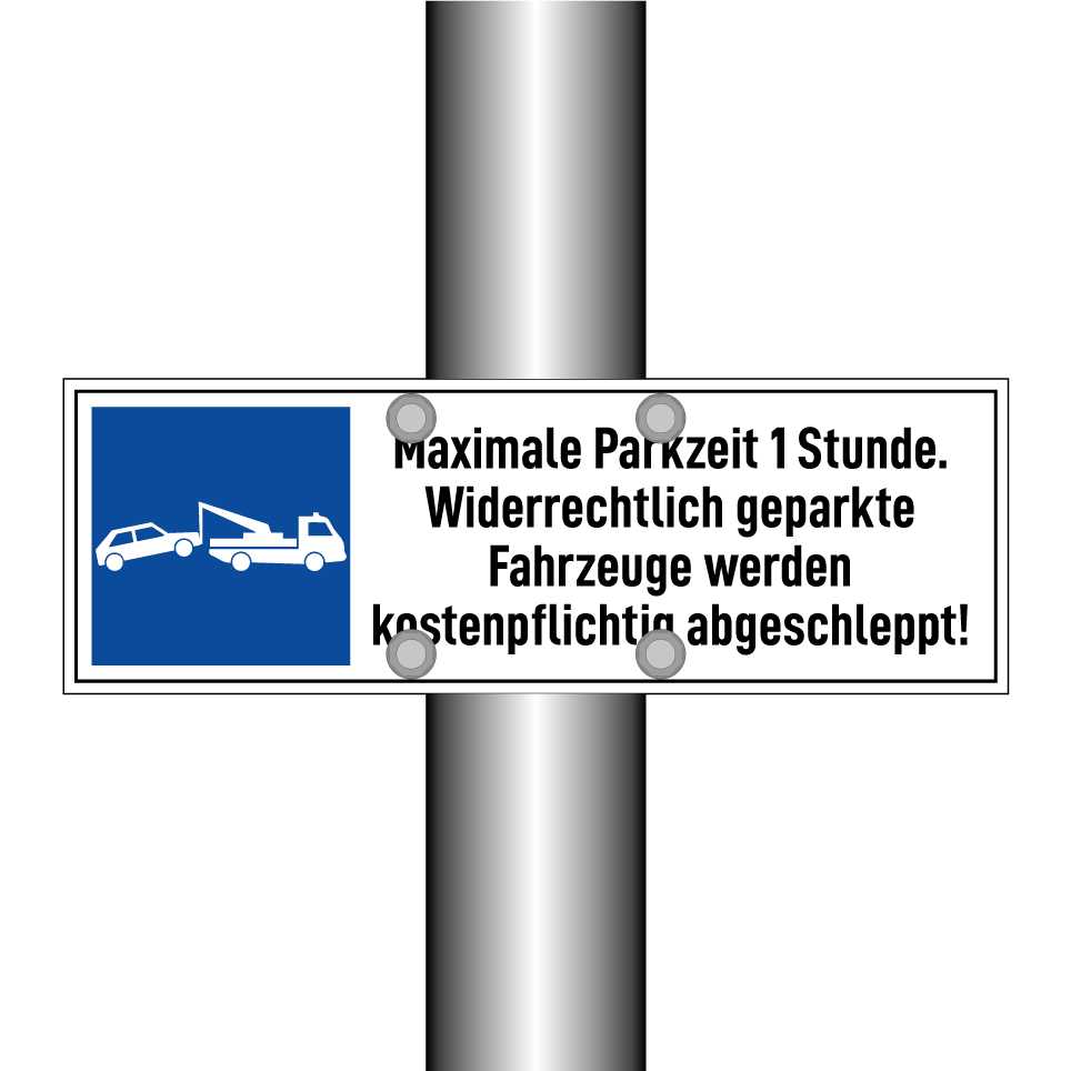 Maximale Parkzeit 1 Stunde. Widerrechtlich geparkte Fahrzeuge werden kostenpflichtig abgeschleppt!