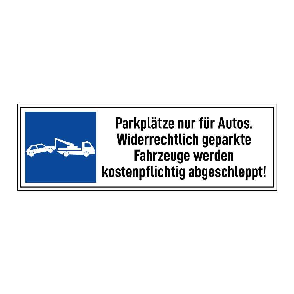 Parkplätze nur für Autos. Widerrechtlich geparkte Fahrzeuge werden kostenpflichtig abgeschleppt!