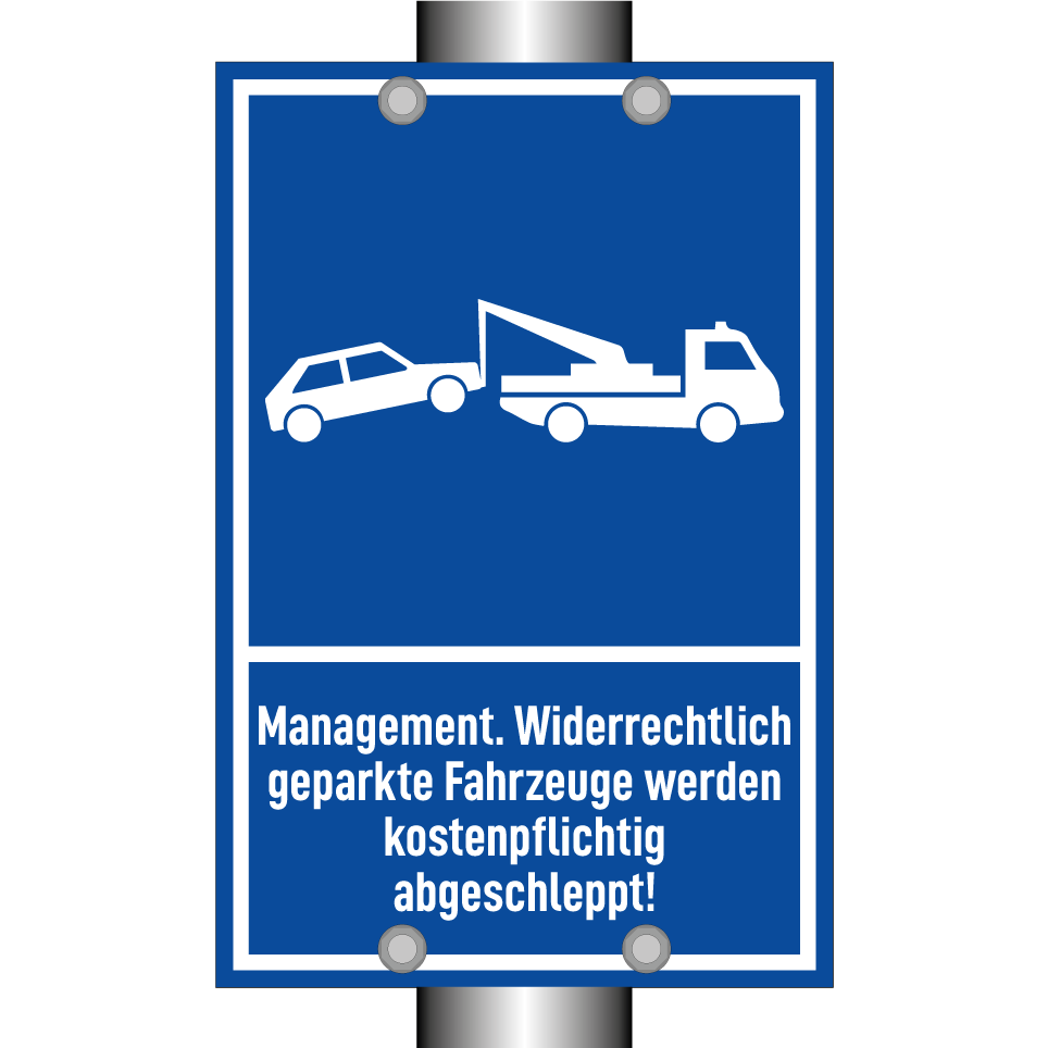 Management. Widerrechtlich geparkte Fahrzeuge werden kostenpflichtig abgeschleppt!