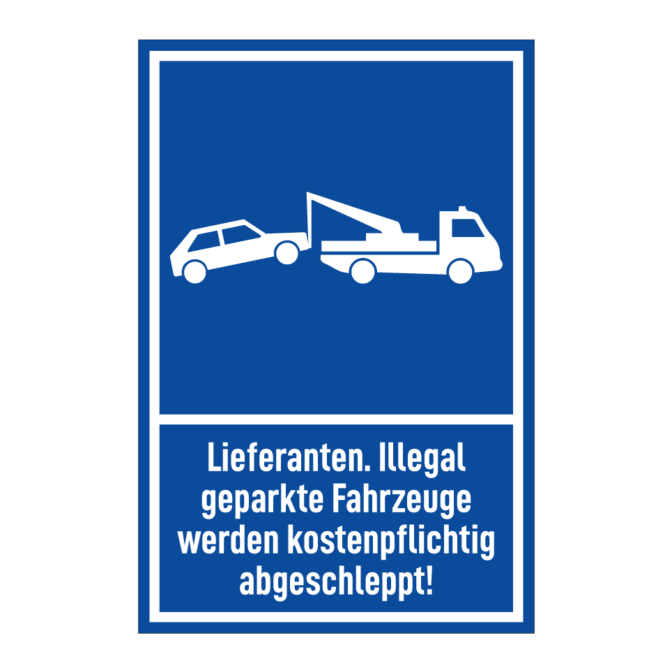 Lieferanten. Illegal geparkte Fahrzeuge werden kostenpflichtig abgeschleppt!