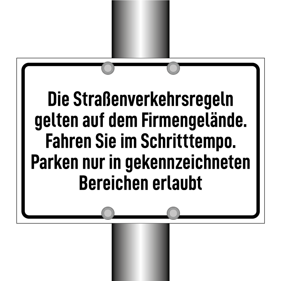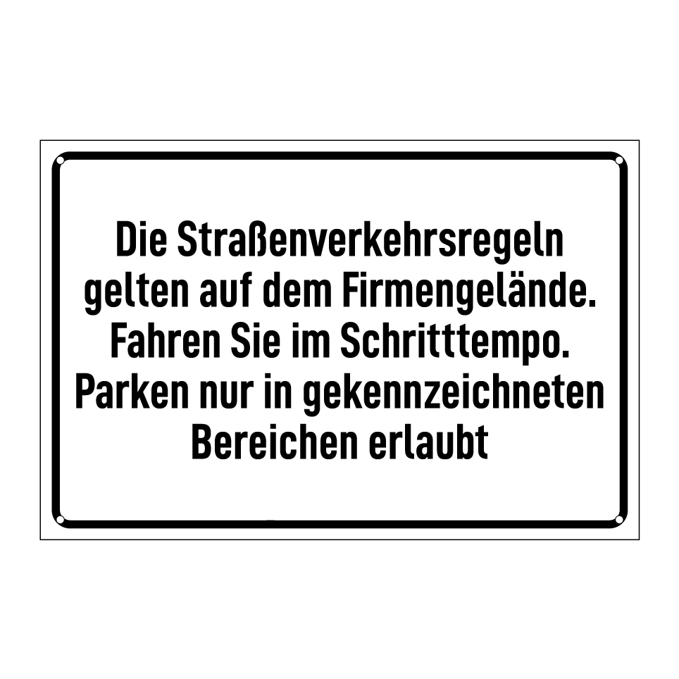 Op de categoriepagina's hieronder vindt u meer producten die lijken op Die Straßenverkehrsregeln gelten auf dem Firmengelände. Fahren Sie im Schritttempo. Parken nur in gekennzeichneten Bereichen erlaubt. Klik hieronder om meer producten te ontdekken.