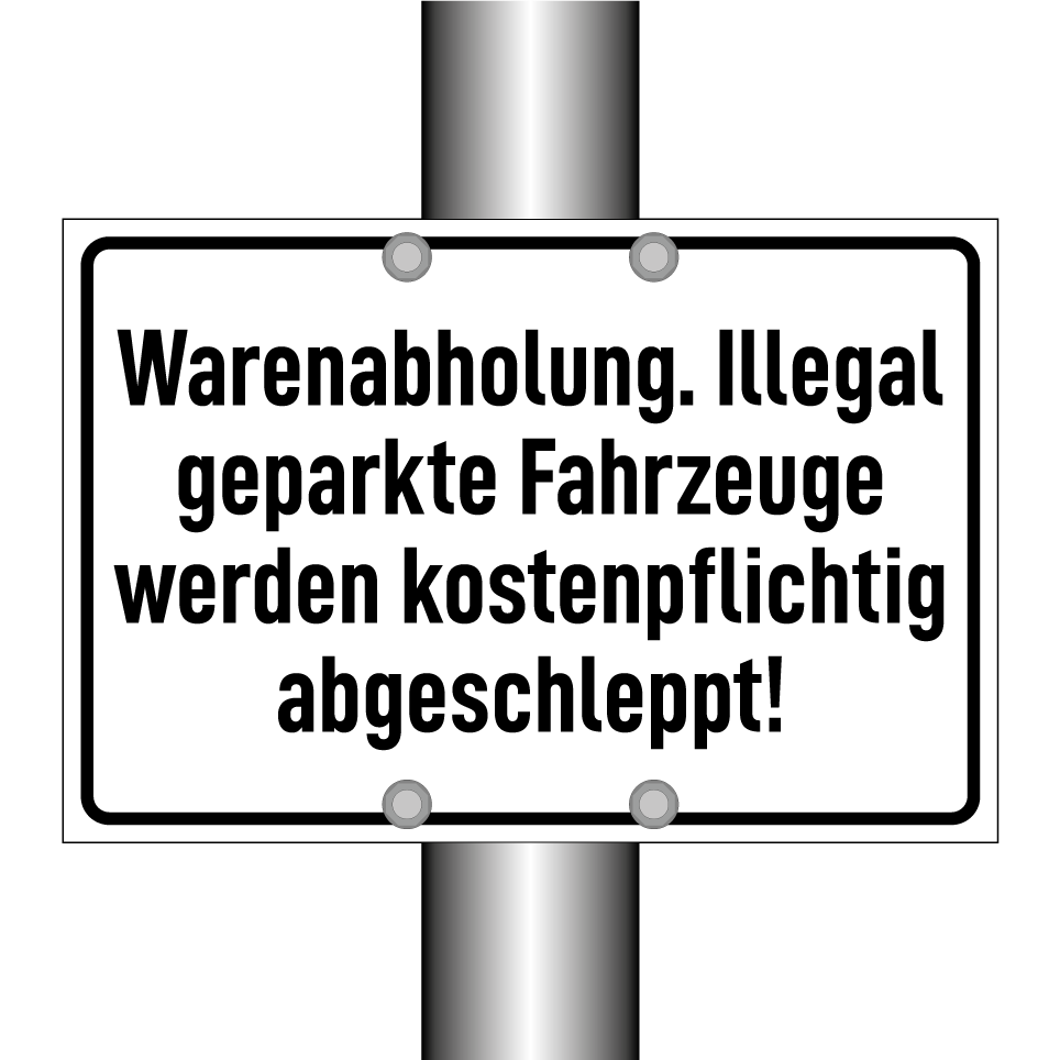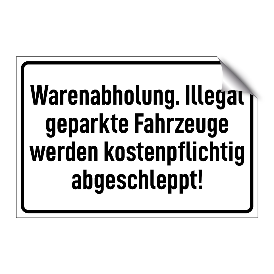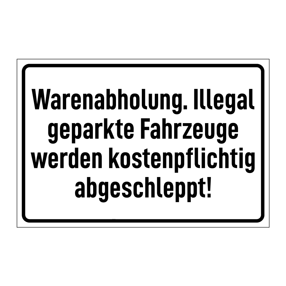 Warenabholung. Illegal geparkte Fahrzeuge werden kostenpflichtig abgeschleppt!