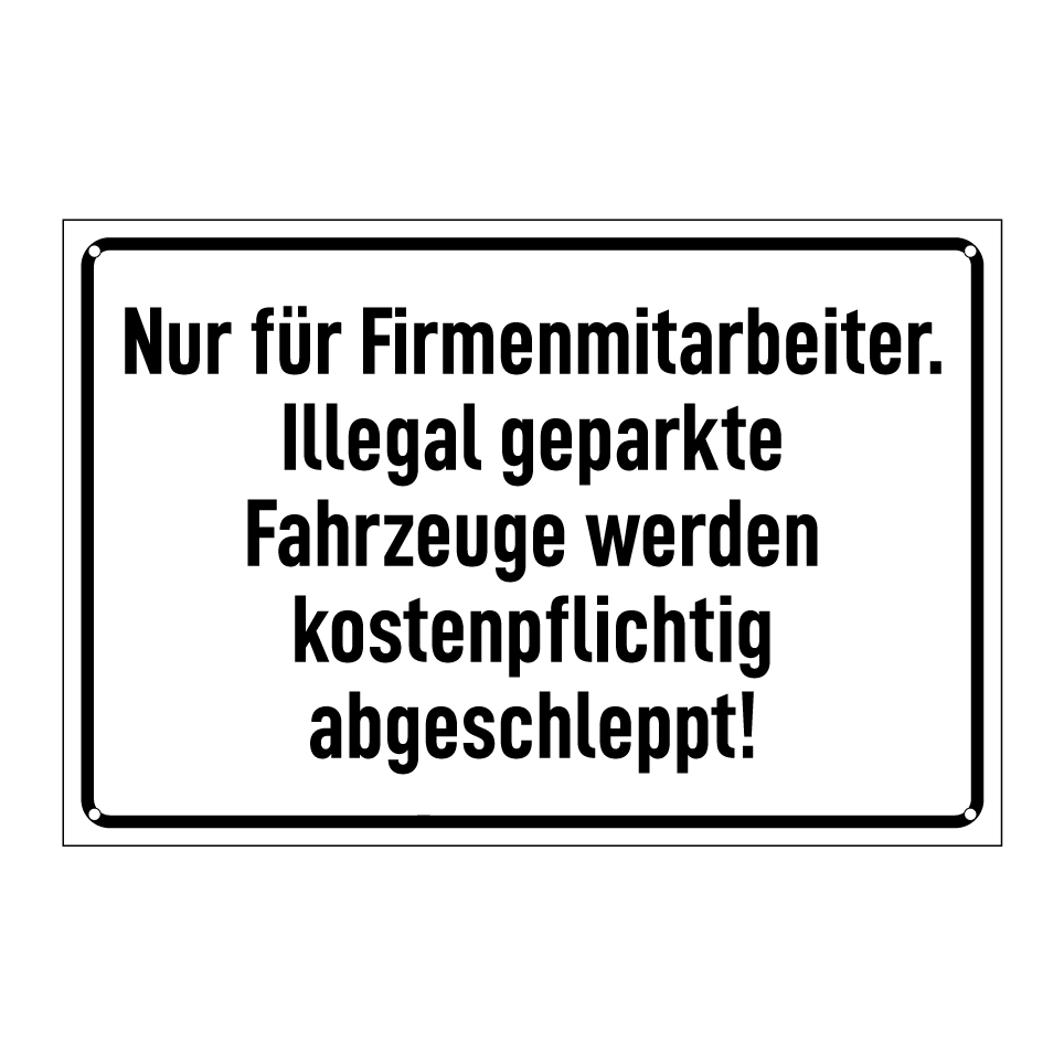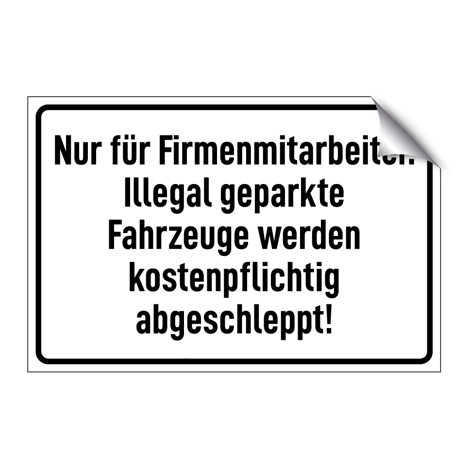 Op de categoriepagina's hieronder vindt u meer producten die lijken op Nur für Firmenmitarbeiter. Illegal geparkte Fahrzeuge werden kostenpflichtig abgeschleppt!. Klik hieronder om meer producten te ontdekken.