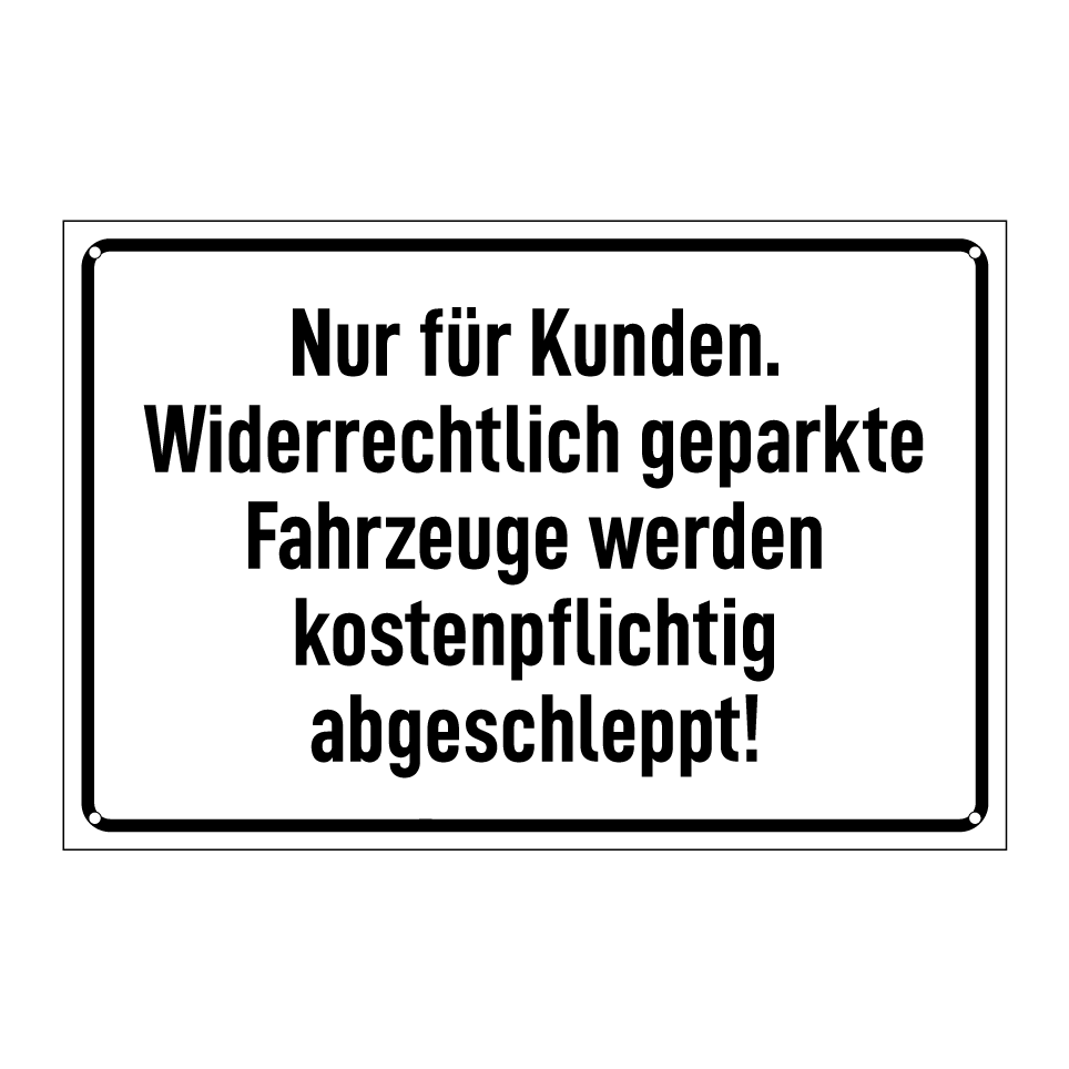 Op de categoriepagina's hieronder vindt u meer producten die lijken op Nur für Kunden. Widerrechtlich geparkte Fahrzeuge werden kostenpflichtig abgeschleppt!. Klik hieronder om meer producten te ontdekken.